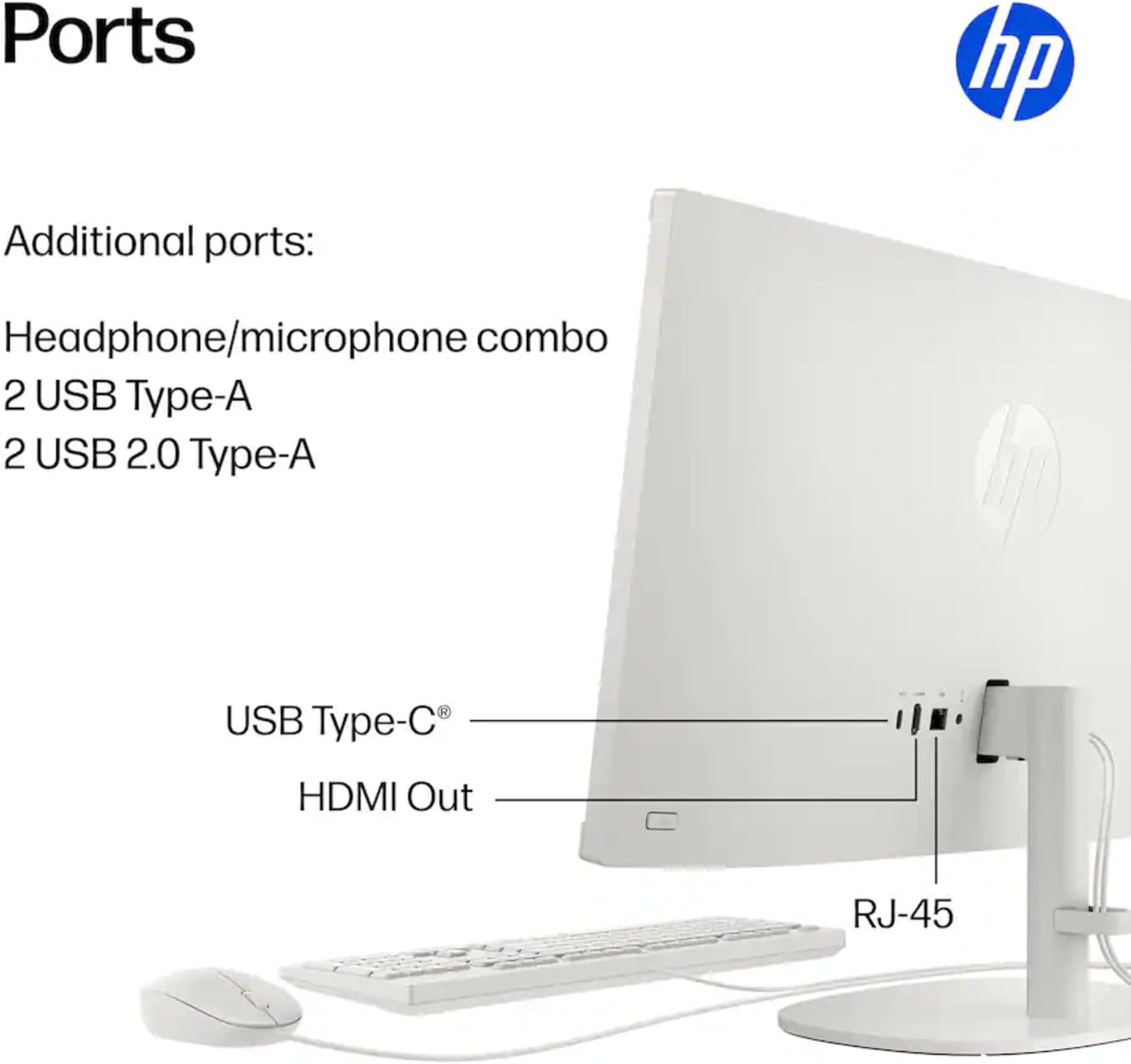 Ports 1x USB Type-C (5Gbps data transfer only) 2x USB Type-A (Hi-Speed) 1x USB Type-A (5Gbps) 1x headphone/microphone combo (3.5mm) 1x RJ-45 Ethernet 1x HDMI-out and built-in WiFi 6 & Bluetooth 5.3 for seamless connectivity.