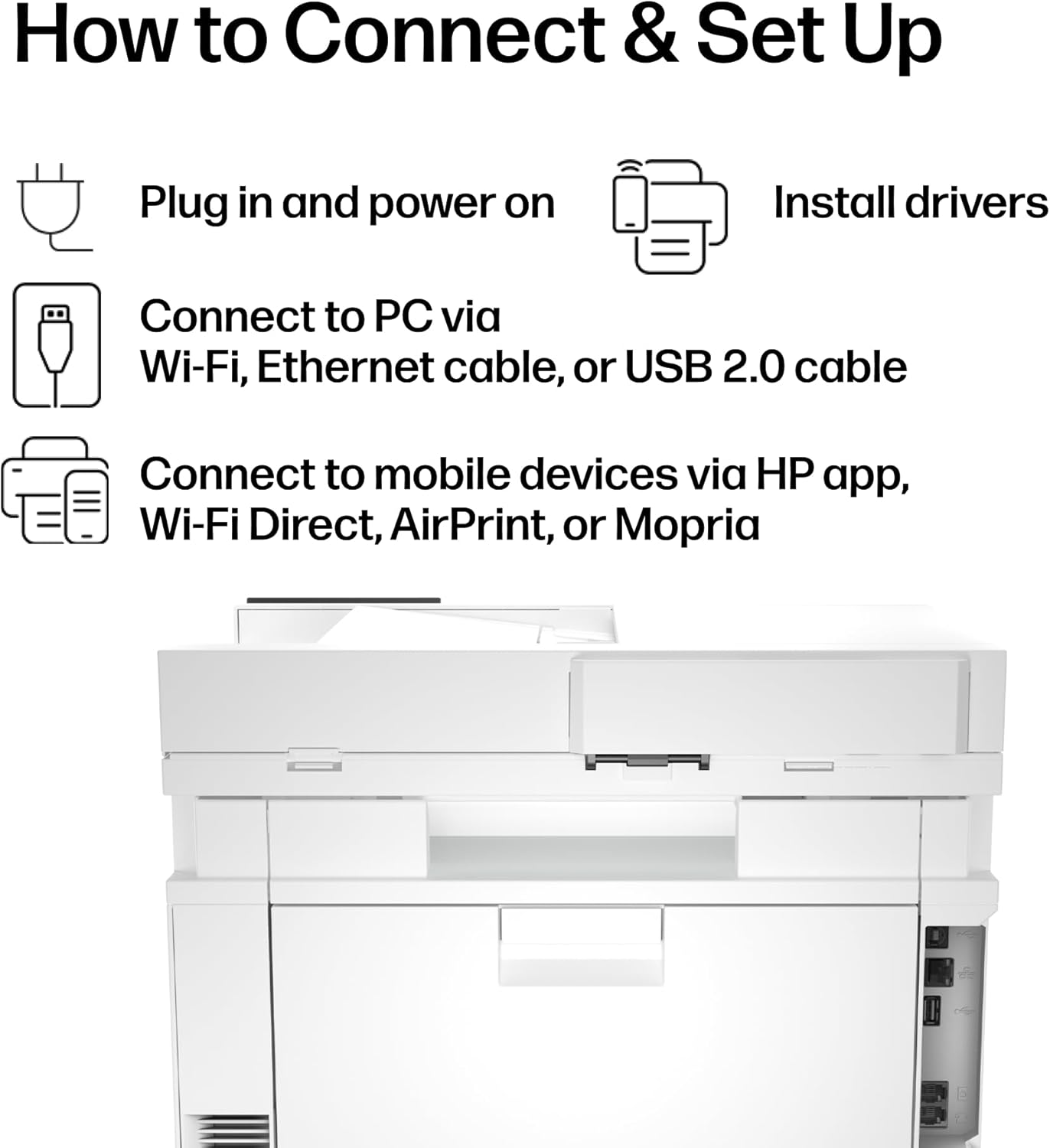PRINT FROM ANY DEVICE Wireless printing from any mobile device PC or tablet. Ethernet and Bluetooth included. Works with Microsoft Mac AirPrint Android Chromebook and more