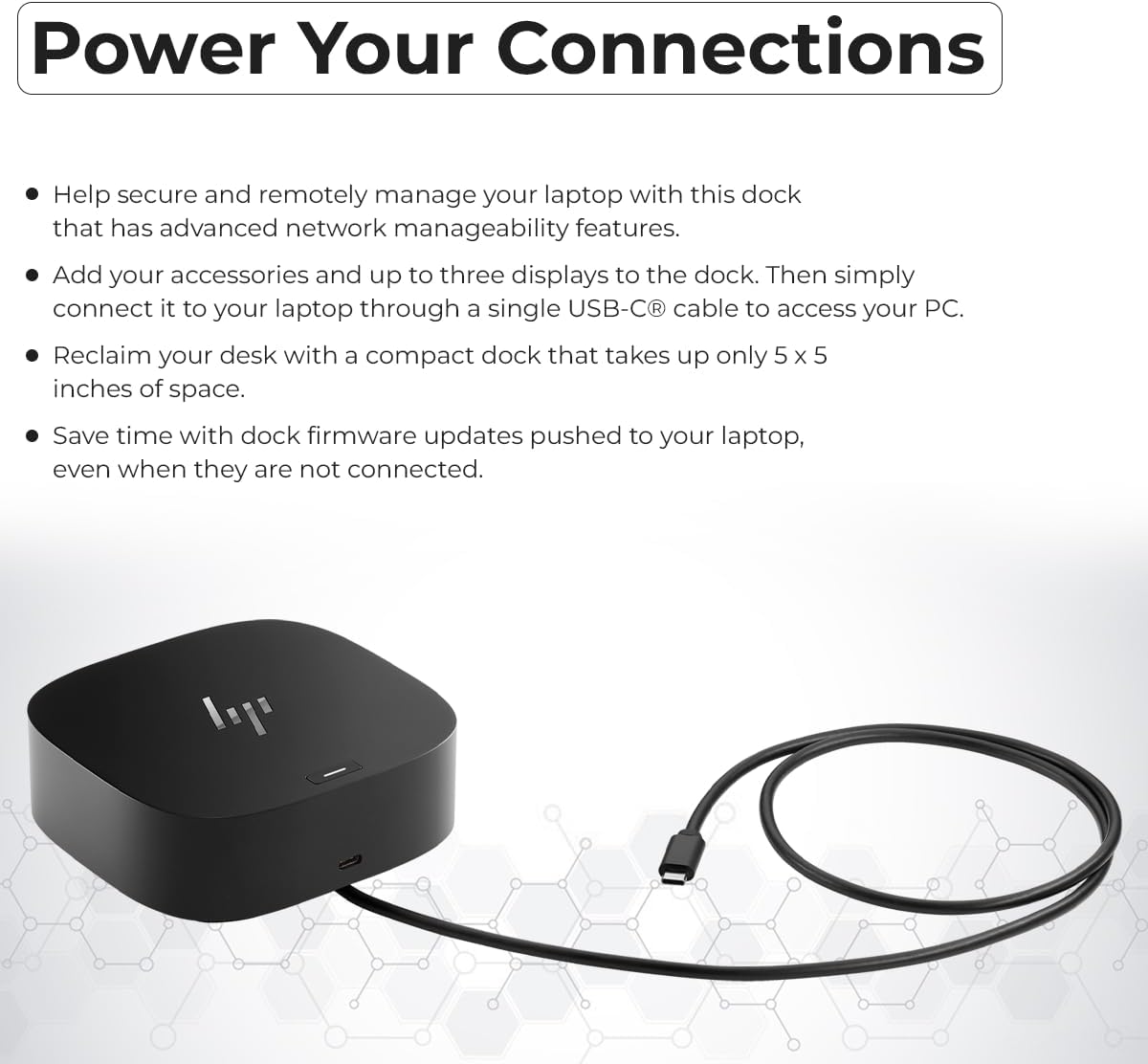 [Universal Compatibility] - Our HP universal docking station is designed for HP and non-HP USB-C Thunderbolt enabled laptops with a single-cable solution for up to three displays. The compact design saves desk space with advanced network management and efficient firmware updates.