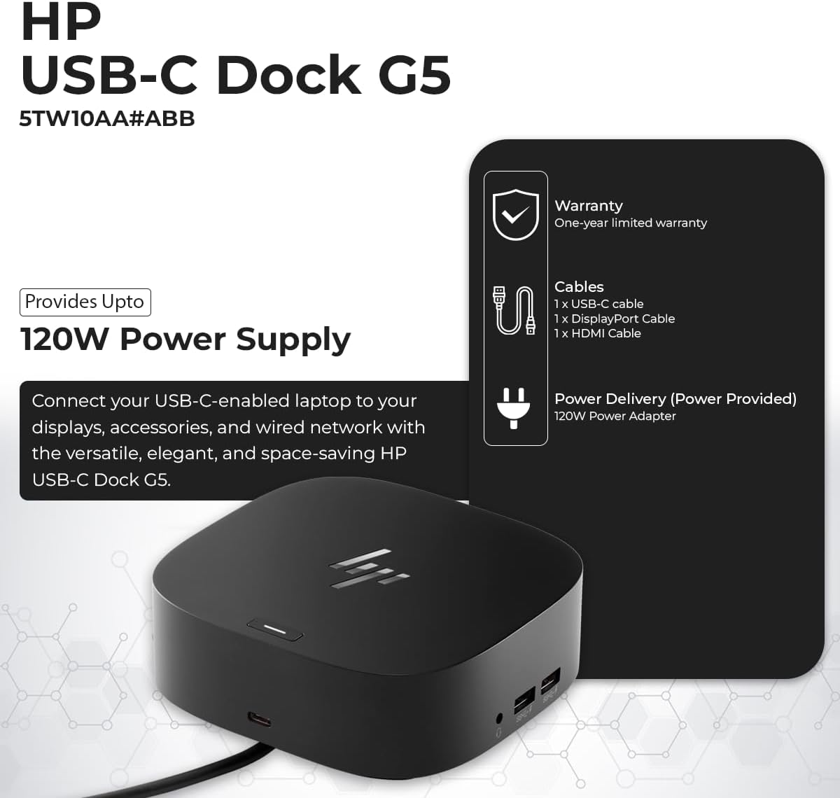 4.8 in x 4.8 in x 1.8 in; 23.98 oz + Gigabit Ethernet; Power Adapter 120 Watt Docking Station for HP Laptop Docking Station Thunderbolt Wired