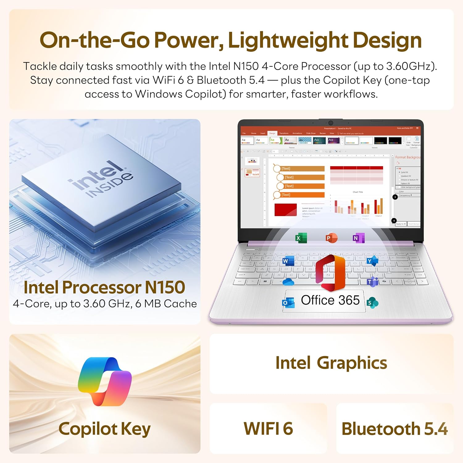 Intel Processor N150Enjoy smooth multitasking and dependable everyday performance optimized for power efficiency and consistent productivity.