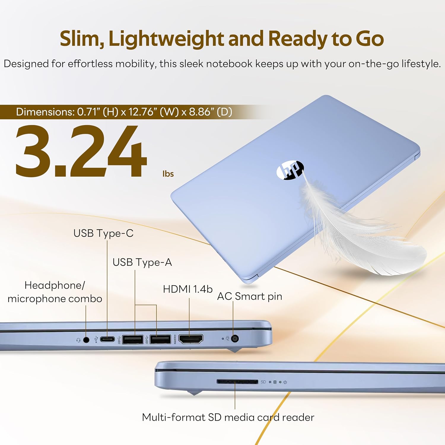 Windows 11 SDimensions & WeightItem dimension: 12.76 x 8.86 x 0.71 inches 3.24 lbs.Ports1x USB Type-C 2x USB Type-A 1x Headphone/microphone combo 1x Media card reader 1x HDMI 1.4b 1x AC Smart pin. Wi-Fi 6 Bluetooth 5.4.Bonus Docking Station Set1x 7-in-1 Docking Station with 1TB Storage 1x 32GB MicroSD Card with Adapter 1x Type-C Data Cable 1x 3-in-1 Charging Cable 1x Suede Cleaning Cloth.