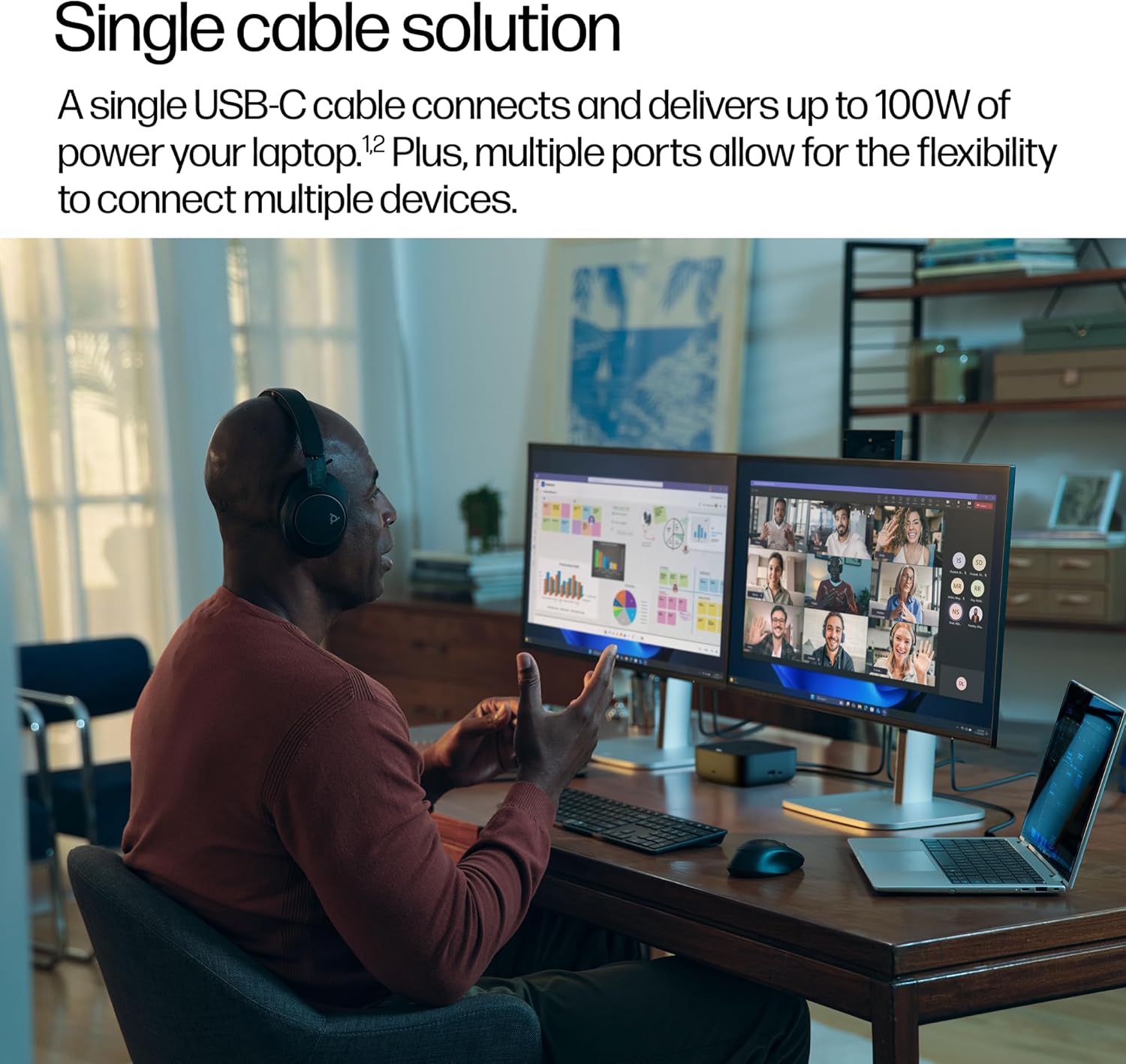 SINGLE CABLE SOLUTION - A single USB-C1 cable connects and delivers up to 100W of power your laptop. Plus multiple ports allow for the flexibility to connect multiple devices
