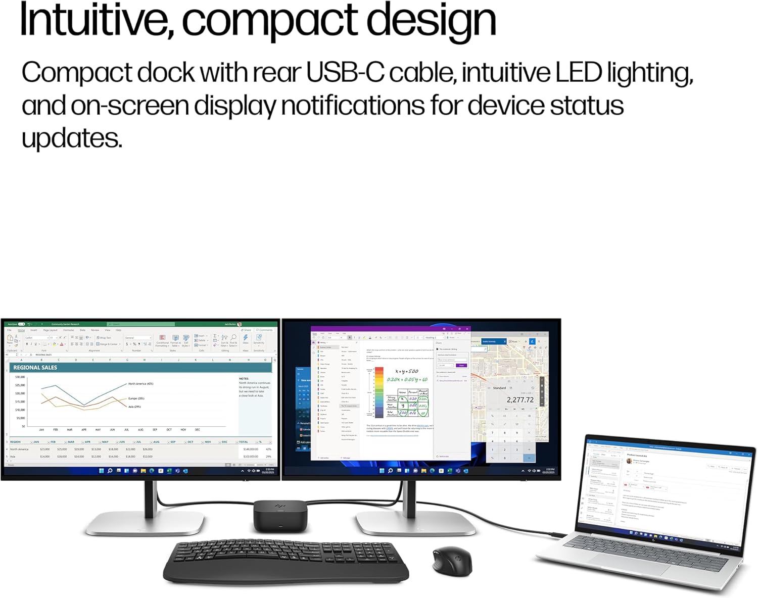 INTUITIVE COMPACT DESIGN - Compact dock with rear USB-C cable intuitive LED lighting and on-screen display notifications for device status updates. Fits any workspace reducing wire clutter