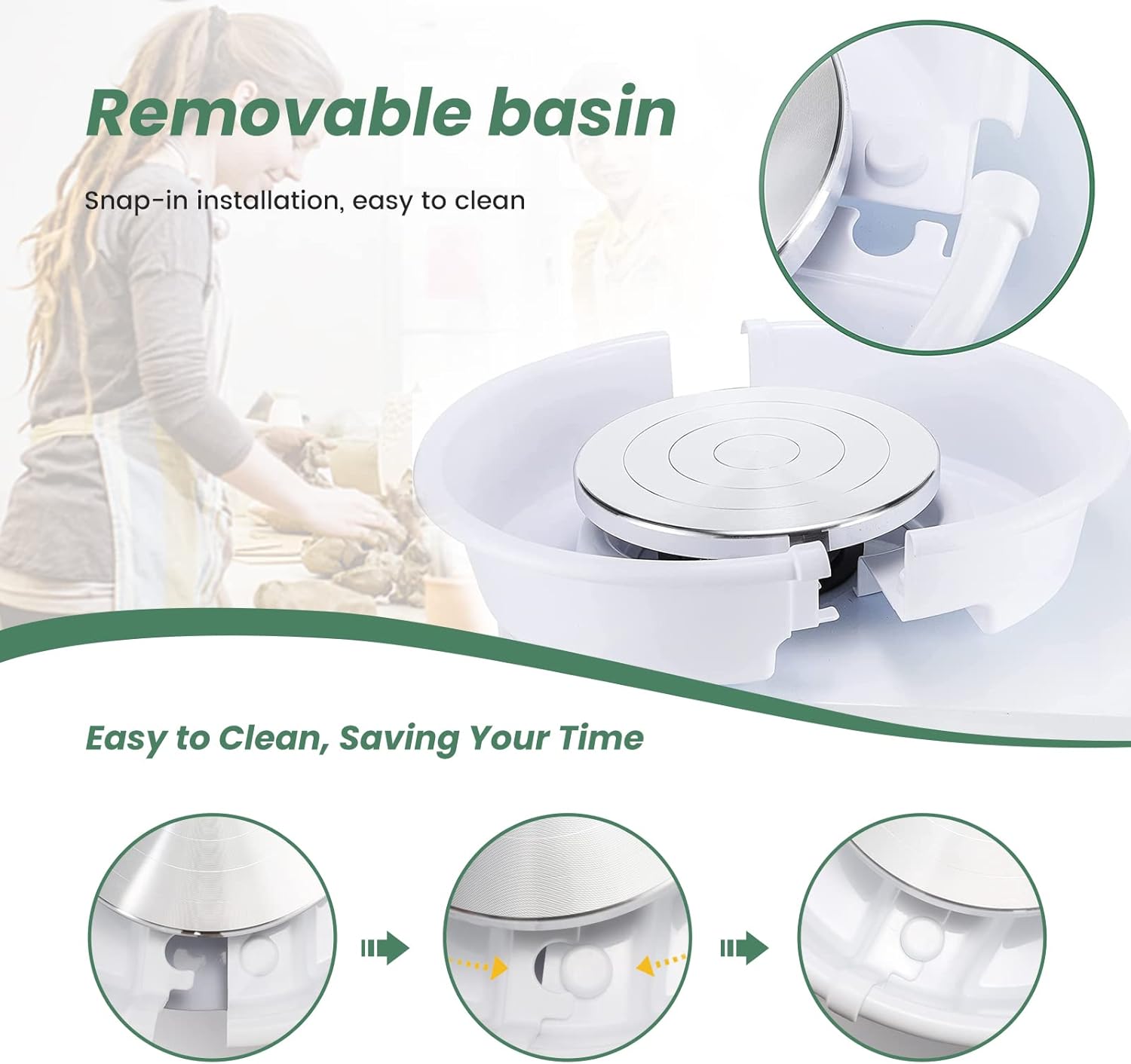 Detachable basin for easy cleaning: The detachable basin made of ABS material of our ceramic machine can not only prevent falling abrasion and deformation but also be easy to assemble and clean saving your time