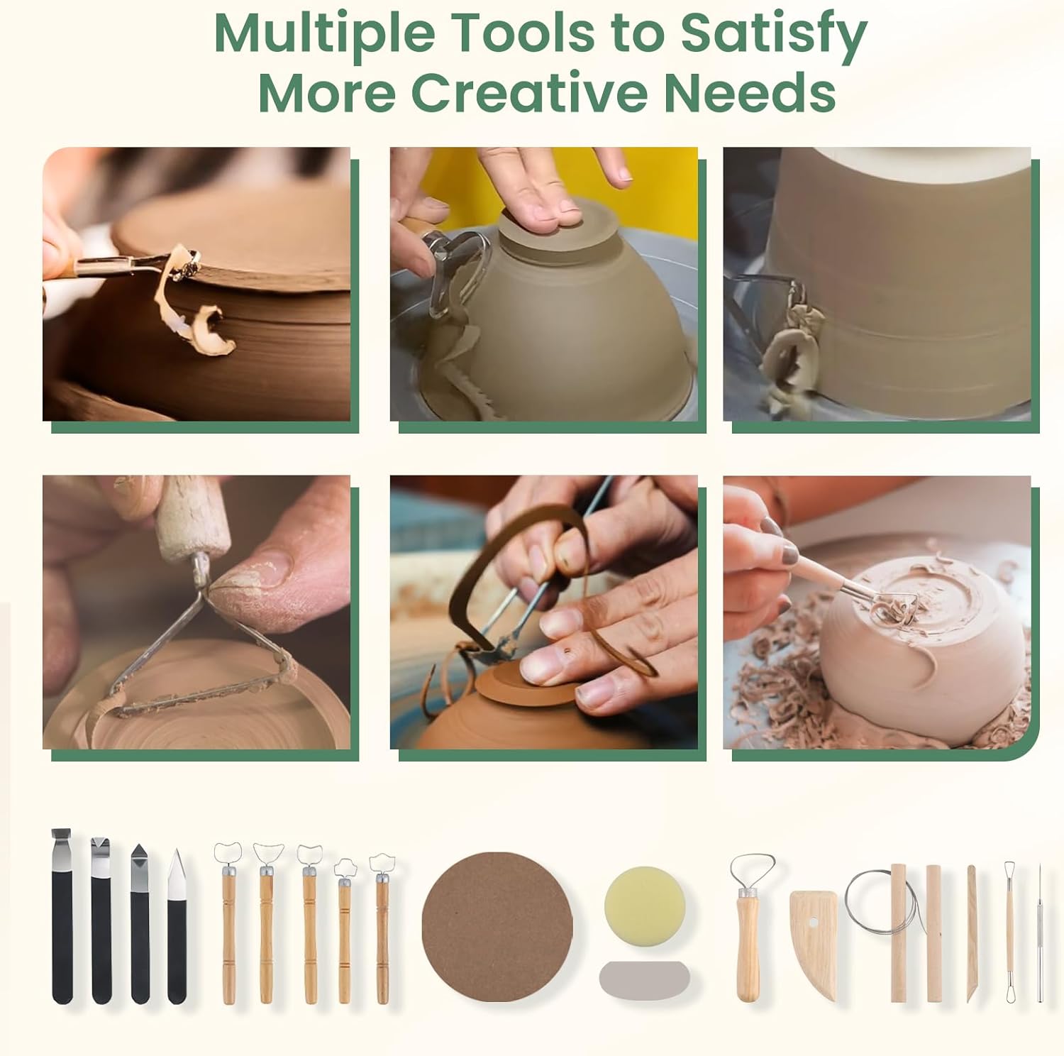 Multiple tools to satisfy more creative Needs: Beyond its basic throwing capabilities this professional pottery wheel machine comes equipped with various tools such as 8 pcs basic tools 4 pcs sculpting scrapers 5 pcs mug cup handle scrapers offering potters even more creative possibilities
