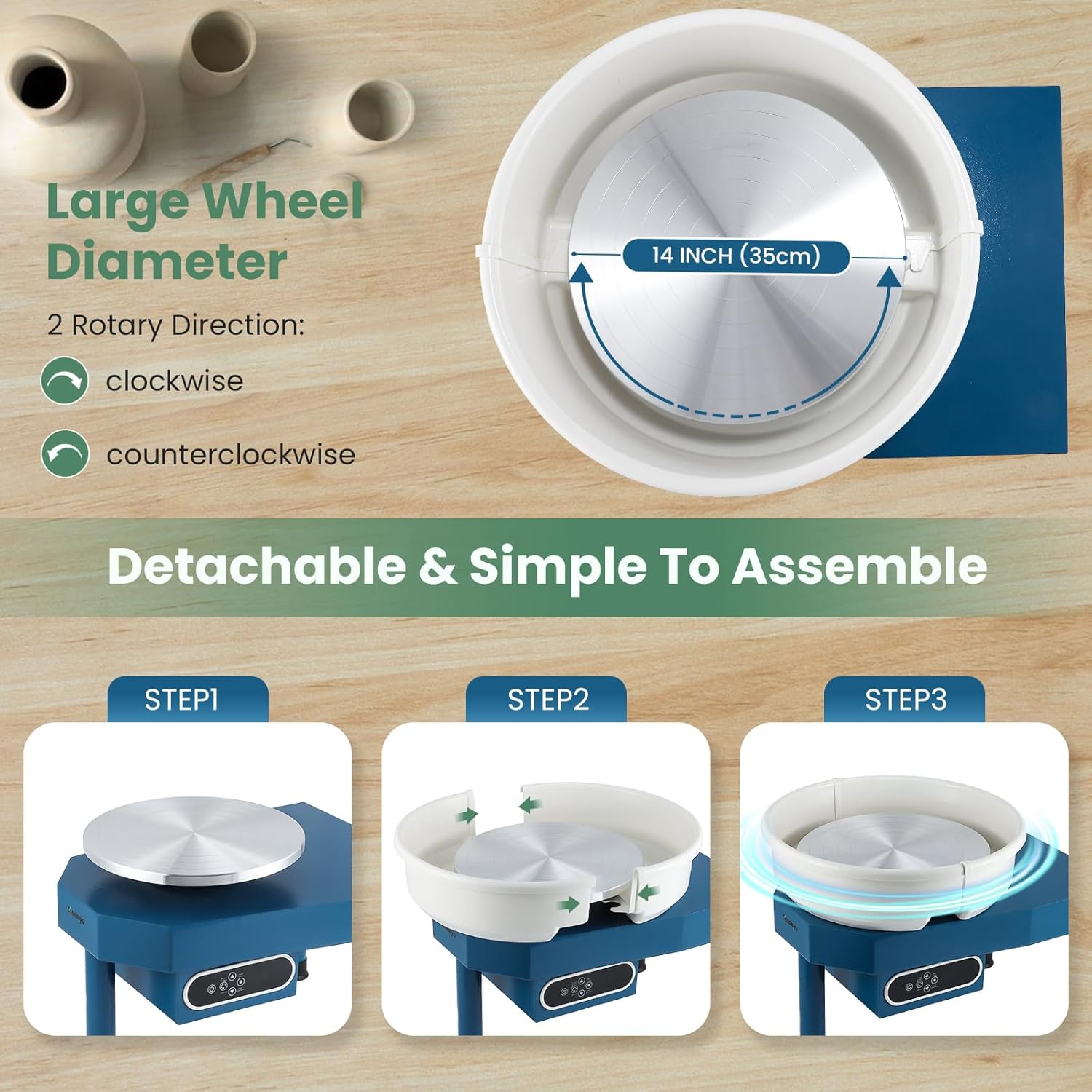 Wide ranging usage: Our ceramic wheel machine can be used not only for professional pottery studio pottery bars home use but also for studio with pottery needs. Easy to operate it can be used by both adults and teens to have a happy time together