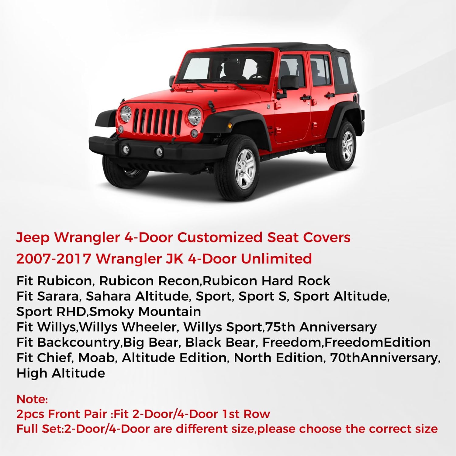 Breathable Materials -- Wrangler seat covers made of durable breathable wear-resistant and waterproof faux leather padded with sponge and cotton to make it feels softer and more comfortable. These automotive car seat cushion cover could protect the seat from dirt dust pet hairs and being scratched. Easy cleaned by wiping it with a soft wet towel