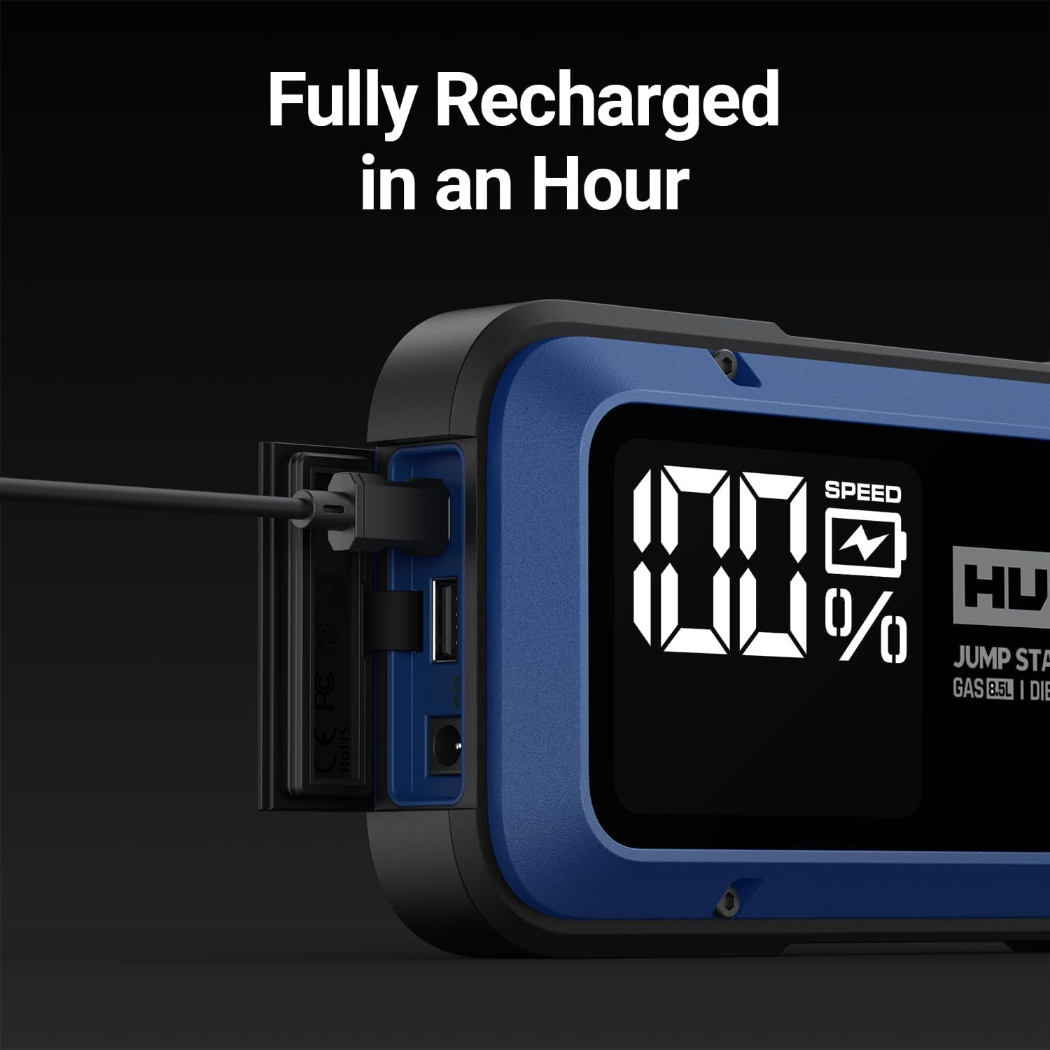 [Start Completely Dead Batteries]: Delivers 2000A peak current to safely jump-start vehicles with up to 8.5L Gas / 6.0L Diesel engines. Also compatible with Toyota Prius and other 12V hybrid cars ensuring reliability for both traditional and hybrid vehicles. Supports up to 60 jump starts on a single charge.
