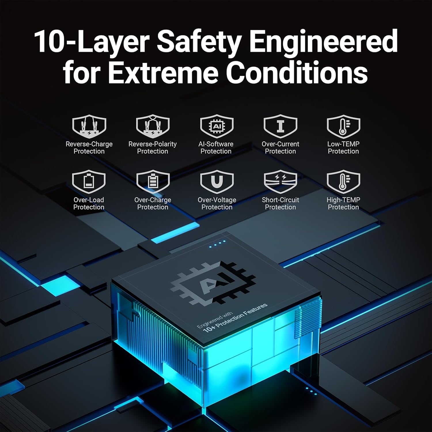 [10-Layer Safety Protection]: Engineered for safety this jump starter features an integrated battery protection system and intelligent clamps. Its 10 safety layers include spark-proof mistake-proof and reverse-polarity protection ensuring a risk-free jump-start. Use this jumper cables confidently free from concerns about short circuits or sparks.