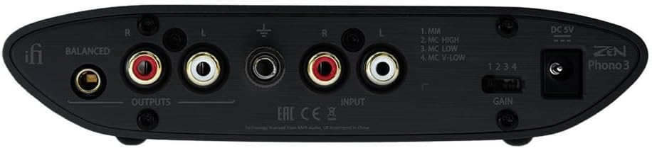 Selectable gain settings for both Moving Magnet (MM) and Moving Coil (MC) cartridges ensure versatile compatibility