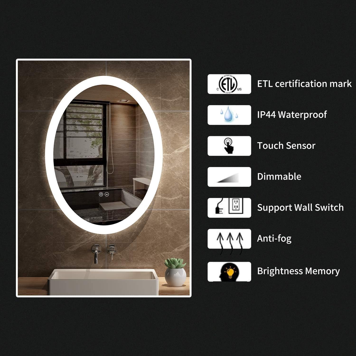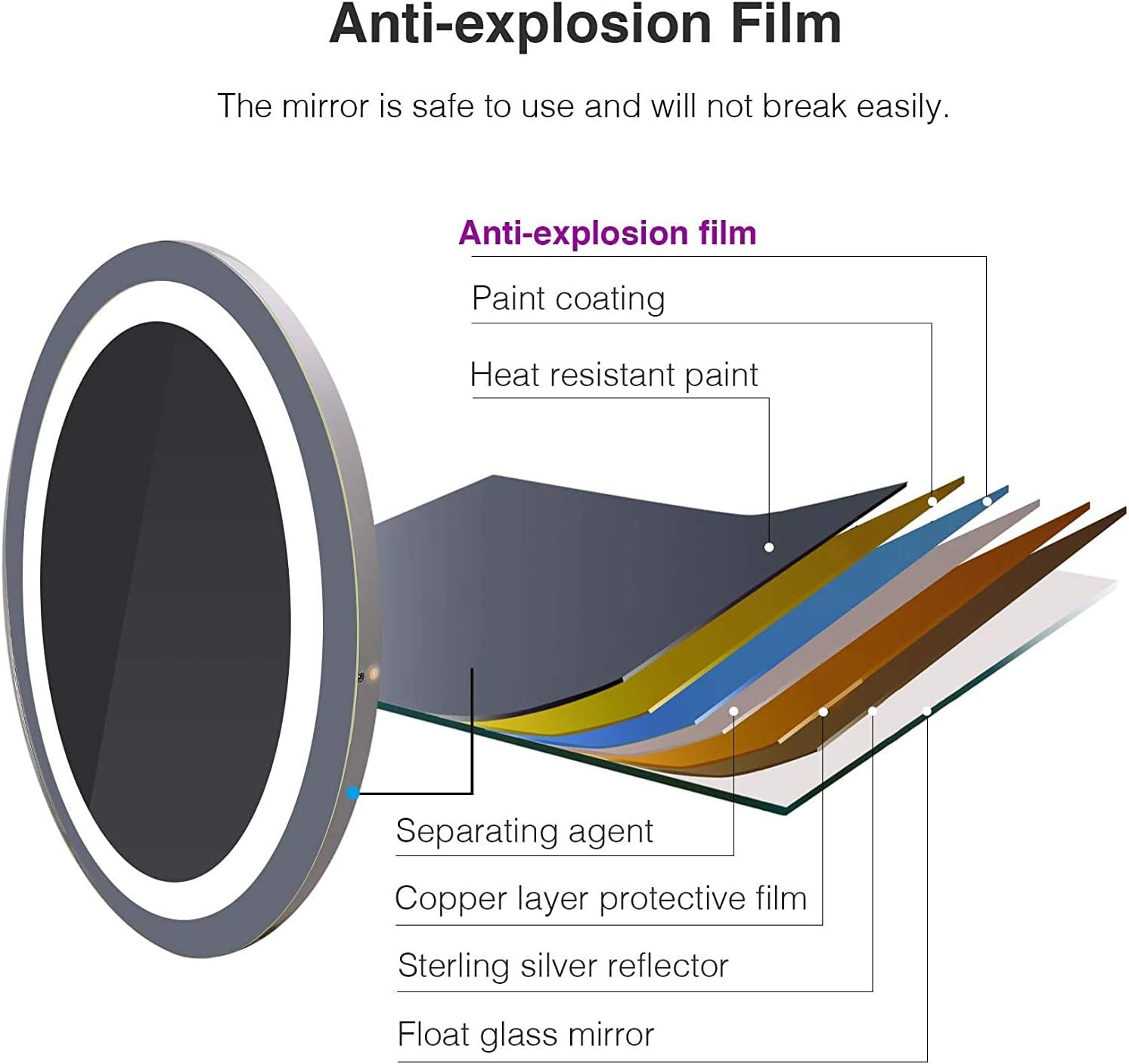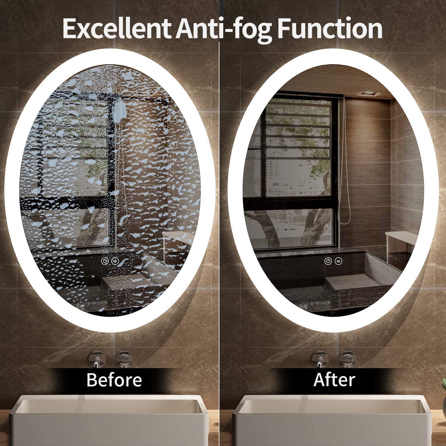 * HHkcvv HkcvvISTORTION-FREE Mirror: High definition Copper-free silver mirror coated with multi protective layers, More environmentally friendly and Less corrosion rate for longer service life. Plus, the back light mirror is distortion-free, meaning it offers high-definition and no distortion image.
