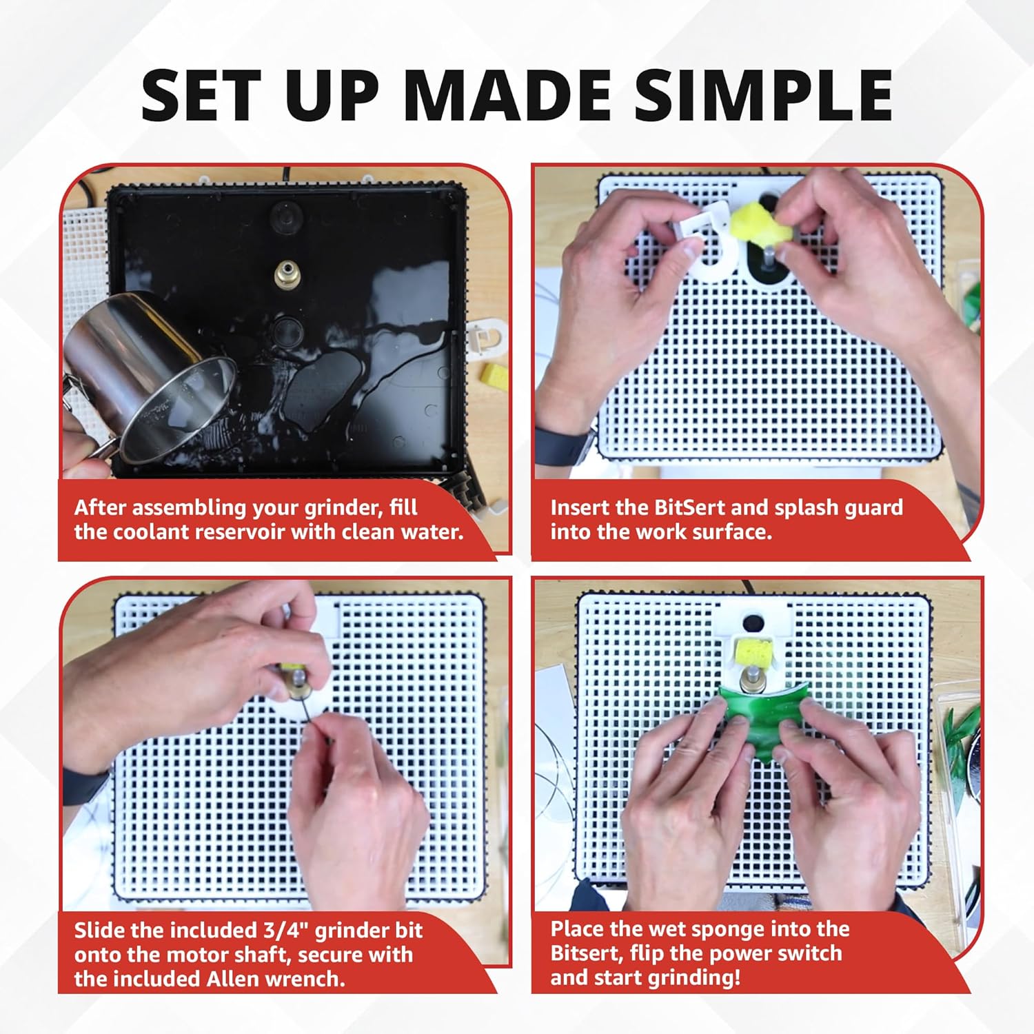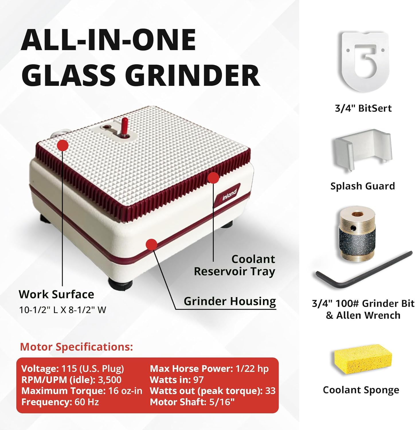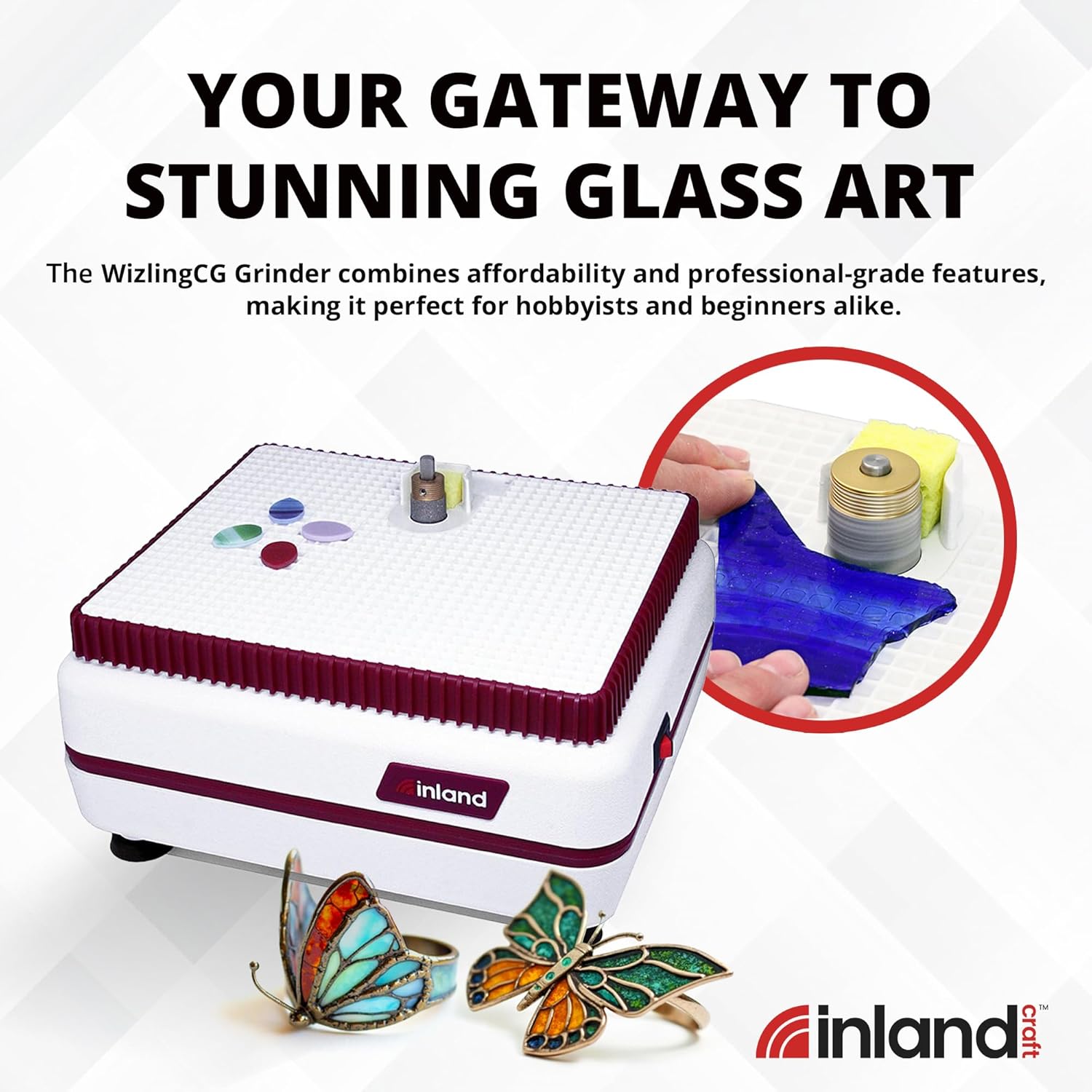 COMPLETE STAINED GLASS GRINDER: The WizlingCG includes the basic needs that every stained glass artist requires to kickstart their projects. It comes equipped with one 3/4" diameter 100# diamond grinding bit Allen wrench coolant sponge and a complete written and visual instruction manual for using precision tools.