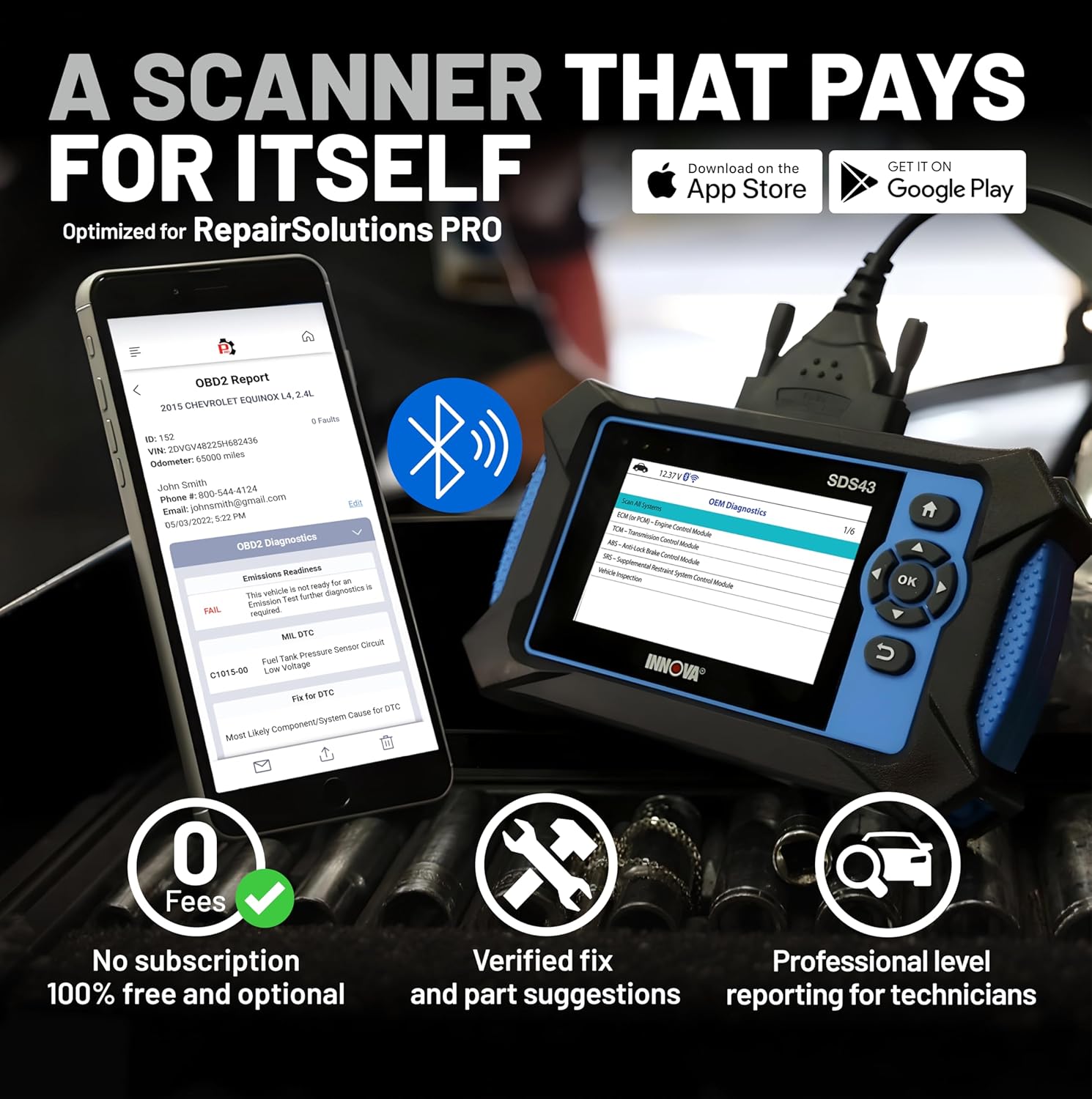 Code Reader for Cars and Trucks No Hidden Fees - Designed as a tablet scanner for all cars the SDS43 includes lifetime access to essential functionsno subscriptions or locked features. Use this code reader for cars and trucks without worrying about surprise charges.