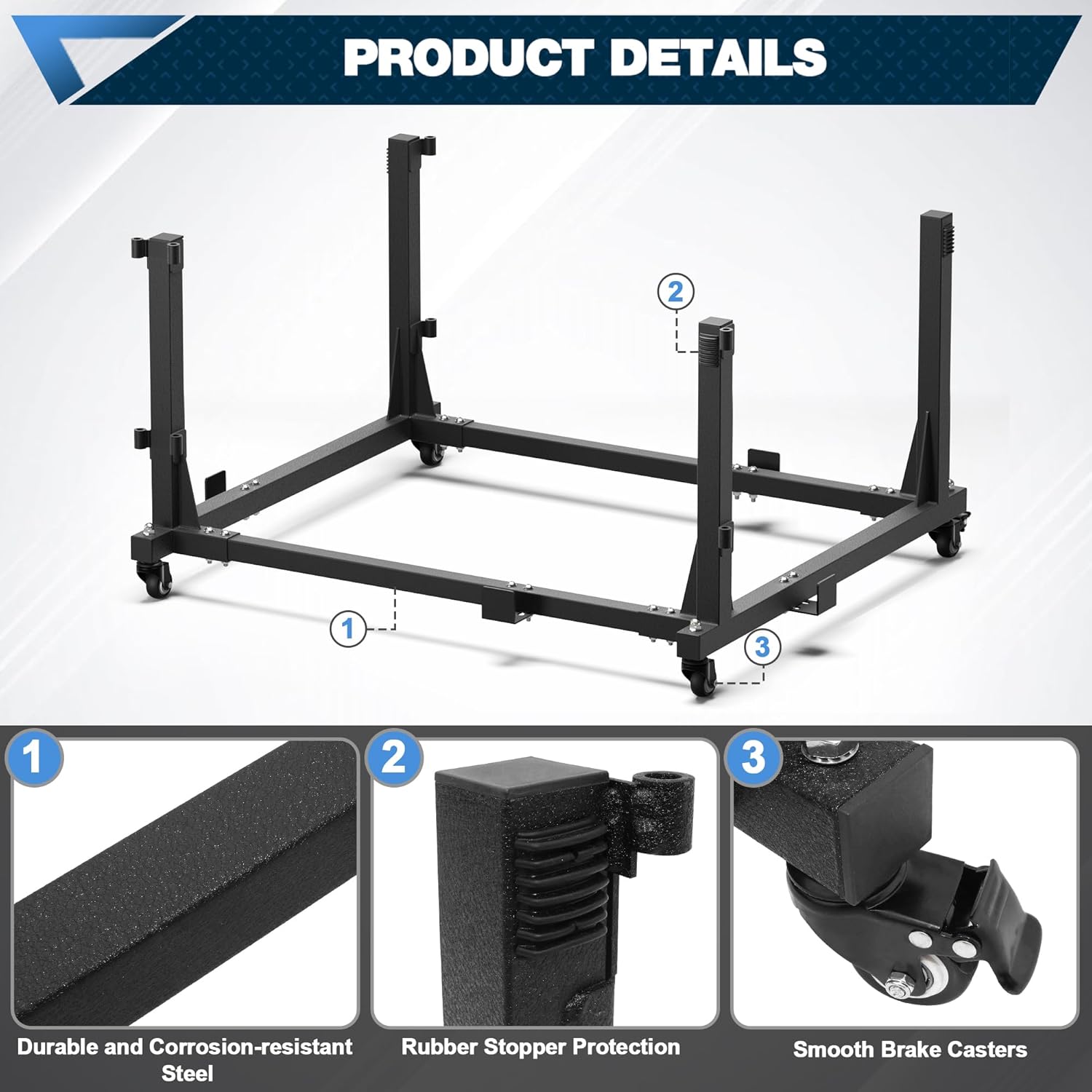 Strong Carbon Steel FrameConstructed from thick carbon steel tubing the main frame provides reliable load-bearing strength suitable for supporting multiple heavy Jeep doors at once. The rigid structure resists bending or instability during storage or movement making it suitable for long-term use. The capacity-focused design supports repeated loading and unloading cycles without compromising structural integrity.