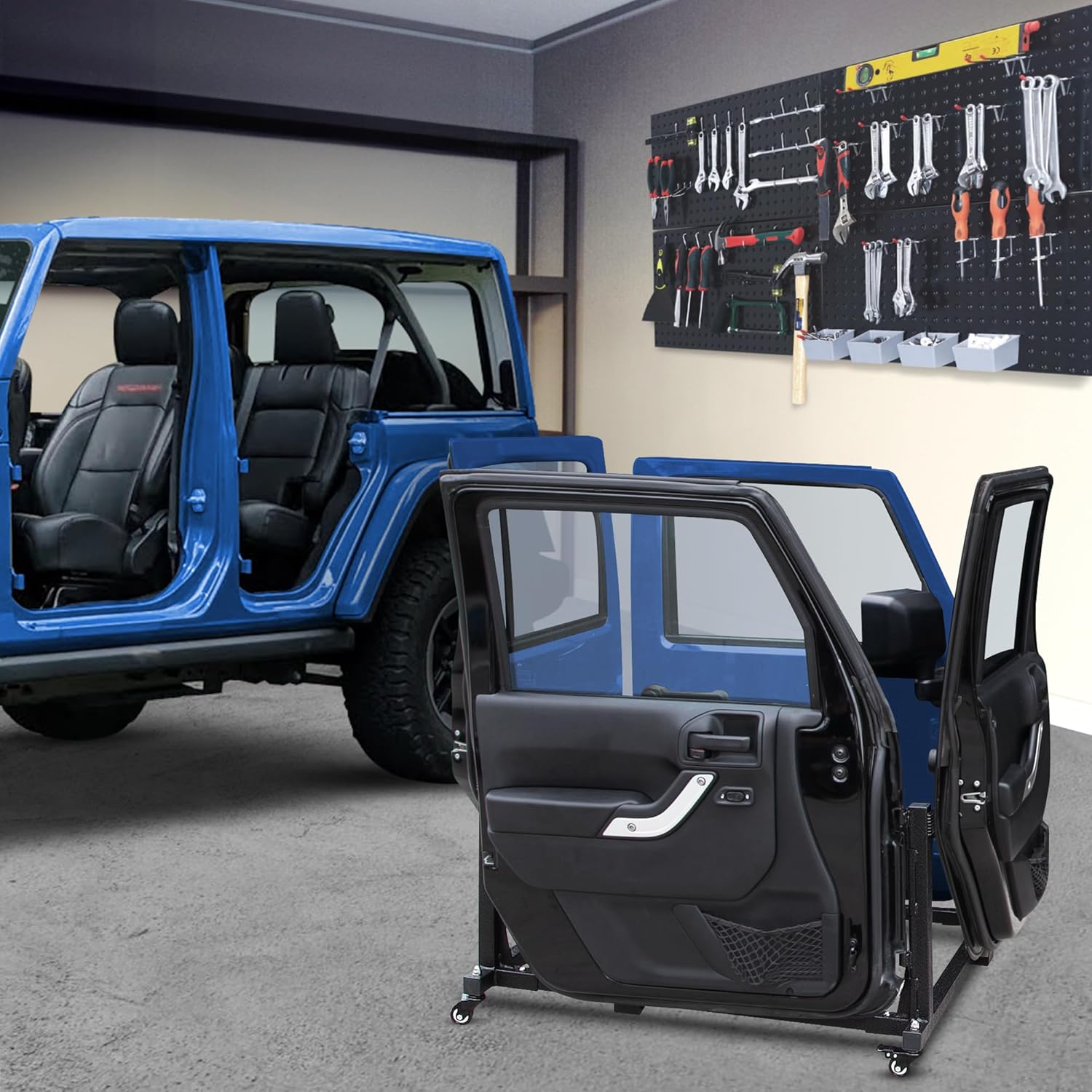 Efficient Space ManagementFeaturing a vertical storage layout this wrangler door storage solution is engineered to maximize garage or workshop space while keeping doors separated and upright. The balanced frame design allows the rack to store two to four metal doors simultaneously reducing clutter and preventing contact between doors. This helps maintain organized storage while improving accessibility for frequent door removal and reinstallation.