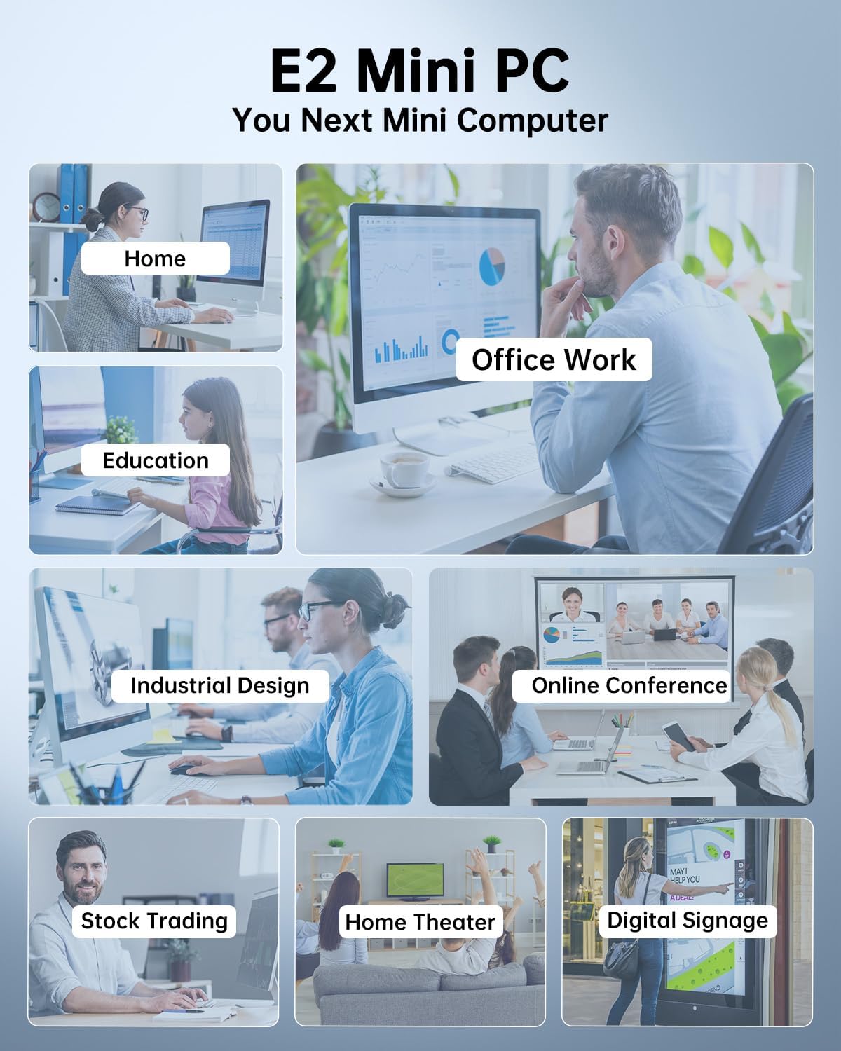 TRIPLE-SCREEN 4K 60Hz BEASTFeaturing UHD Graphics this mini desktop computer supports dual 4K@60Hz displays (via 1x HDMI 2.0 + 1x DP 1.4). Experience vibrant sharp visuals ideal for 4K web video home theater or creative work. Easily support the connection of multiple screens enabling you to perform multiple operations simultaneously thereby significantly enhancing the efficiency of your work and entertainment.