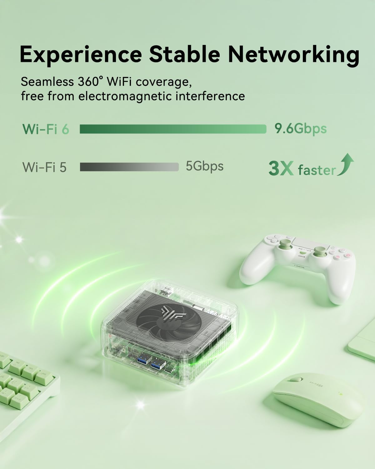 WiFi 6/BT5.2 Experience lightning-fast stable connectivity with WiFi 6 (3x faster than Wi-Fi 5) perfect for 4K streaming smooth video conferencing and rapid file transfers without interruptions. Bluetooth 5.2 offers faster more reliable connections to wireless peripherals like headphones keyboards and mice with ultra-low latency.Built-in cooling fan eliminating the need to worry about noise and heating