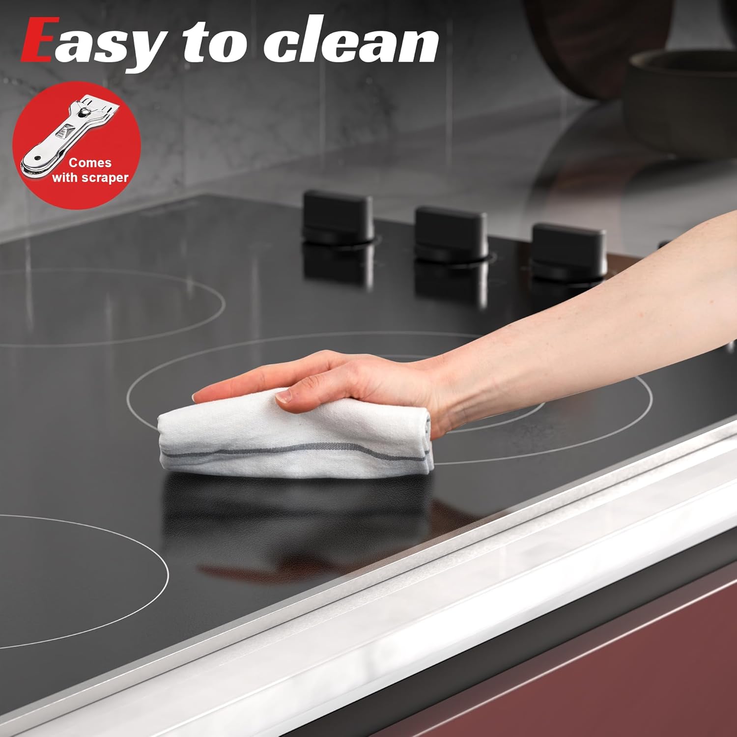 Compatible with All CookwareThe built in ceramic hob can be used with any type of cookware such as aluminium pans copper pans cast iron frying pans and non-magnetic stainless steel pans can heats cookware efficiently with minimal heat loss. Glass cooktop electric is easy to clean simply wipe with a clean cloth when cool.