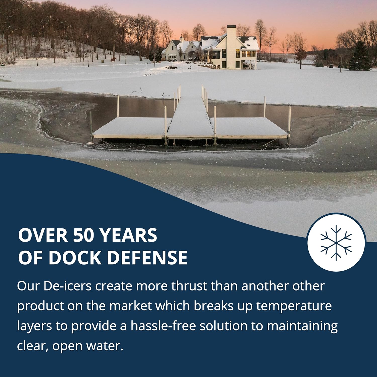 Built to Last: Designed for continuous duty De-icers deliver reliable long-lasting performance in even the most demanding environments including marinas residential docks and commercial waterfronts. Engineered to withstand extreme cold ice and harsh weather they keep water open and protect your property all winter long. With corrosion-resistant materials and heavy-duty construction De-icers provide season-after-season reliability you can depend on.