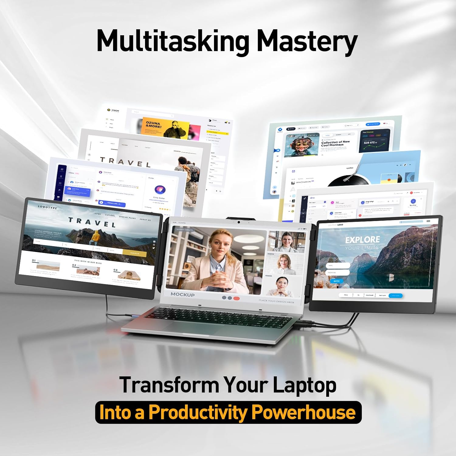 Ergonomic ComfortEngineered for productivity and comfort our laptop monitor extender attaches to your laptop in secondsentirely tool-free with no magnets or adhesives required. The kickstand offers precise 0-90 tilt adjustment for optimal viewing angles significantly reducing neck and eye strain during extended work sessions. Its lightweight yet sturdy design adapts to all-day scenarios effortlessly handling both desk-bound and mobile work environments.