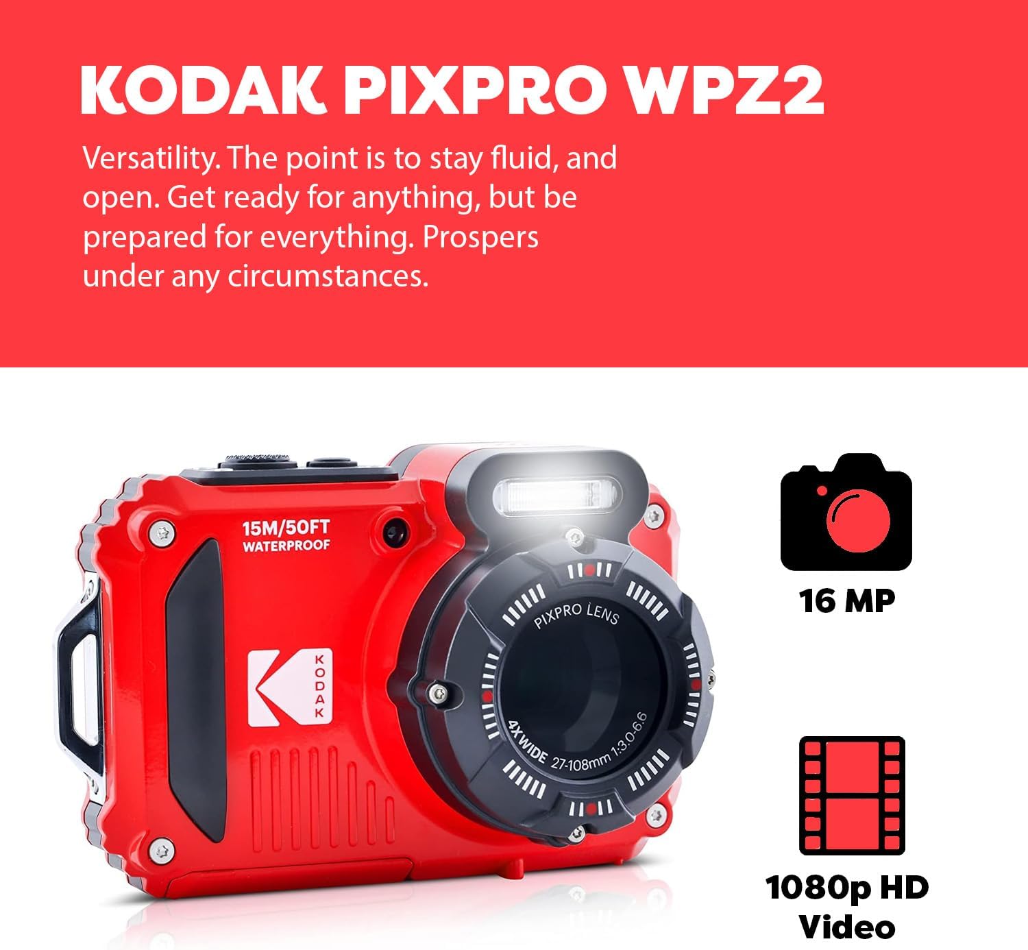 The PIXPRO WPZ2 Digital Camera is the perfect companion to get wet. Shockproof dustproof and adventure ready the WPZ2 was built to take on the go and be used in on and under the water. With a host of scene modes and 1080P HD video to help you capture your best shots the WPZ2 is not going to miss a beat. Built-in WiFi allows you to connect the WPZ2 to your iOS or Android device and share your outdoor adventures with friends or on social media. PIXPRO Digital Cameras - Tell your story.