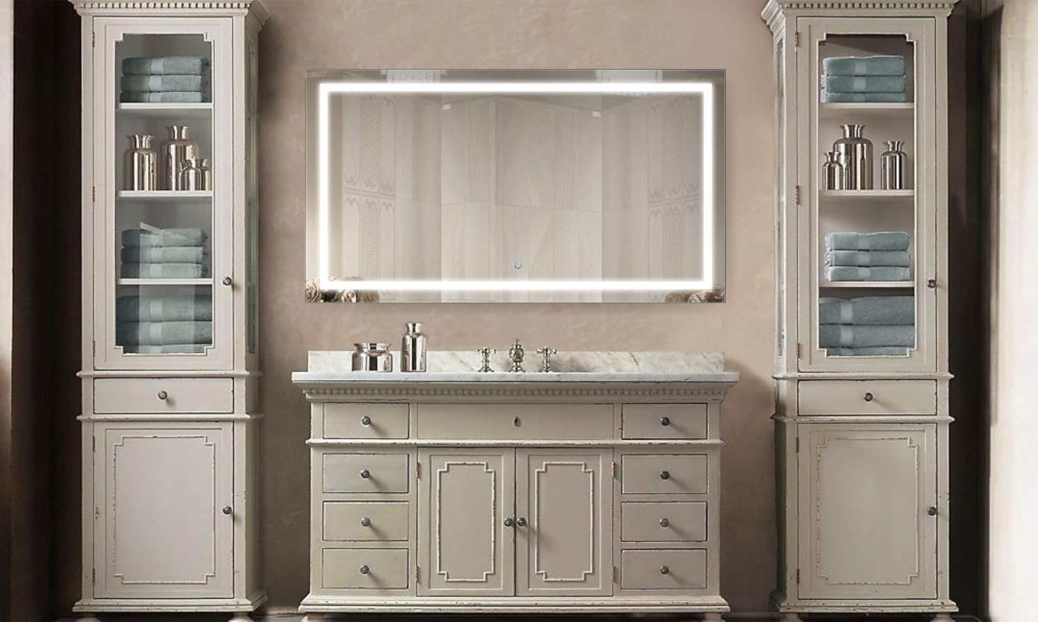 ✅HkcvvEFOGGING FEATURE: The vanity mirror features an innovative defogger pad behind the mirror that keeps the mirror free from condensation and keeps it clear.