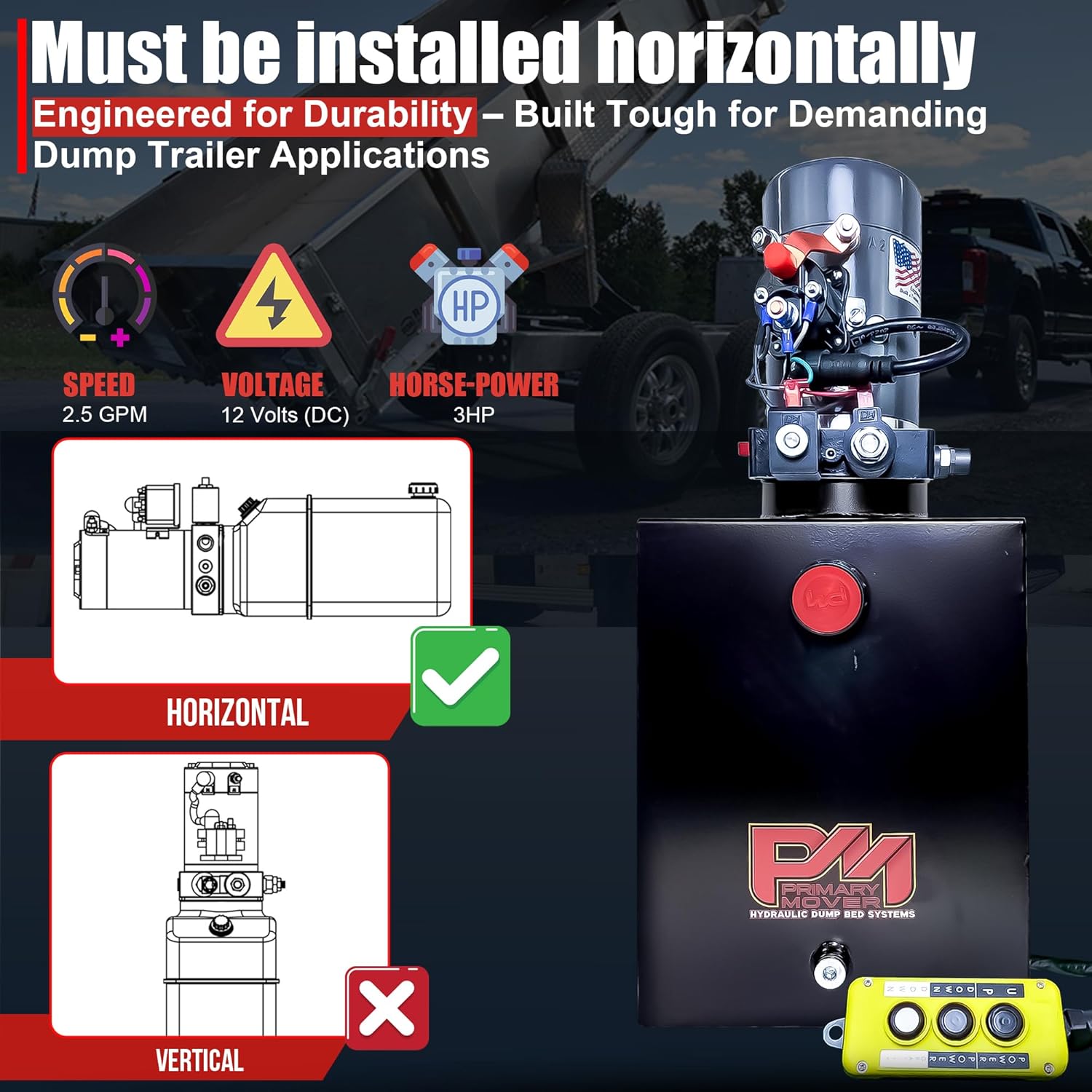 Easy Installation: The KTI 12VDC hydraulic pump is designed for hassle-free installation saving you time and effort. Its user-friendly design facilitates a straightforward setup allowing you to get your hydraulic system up and running quickly.
