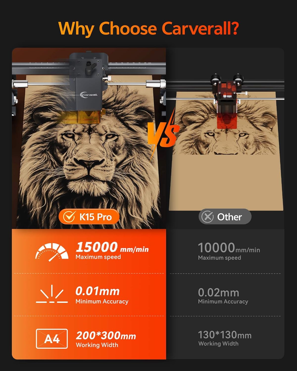 Professional-Grade Precision & Speed: The K15 Pro laser engraver machine combines 0.01mm precision (outperforming standard 0.1mm models) with a 15 000mm/s min engraving speedideal for jewelry custom gifts and DIY crafts where detail and efficiency matter. Please read the user manual carefully before operation. If you have any questions or need help feel free to contact us via Amazon at any time.