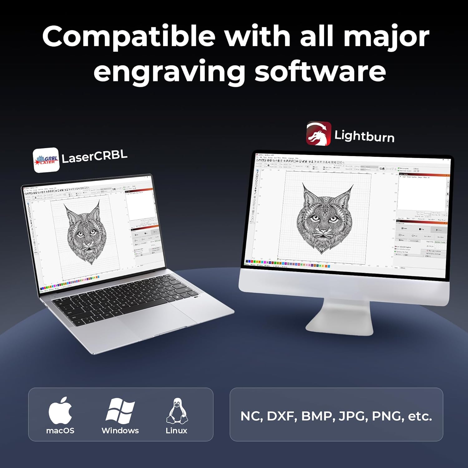 DIY-Friendly & Upgradeable Easy to assemble and customize the engraver supports laser heads from 4W to 12W for diverse applications. Compatible with LightBurn and LaserGRBL and works with Windows macOS and Linux. Upgrade with accessories such as rotary modules enclosures and air pumps to expand capabilities.