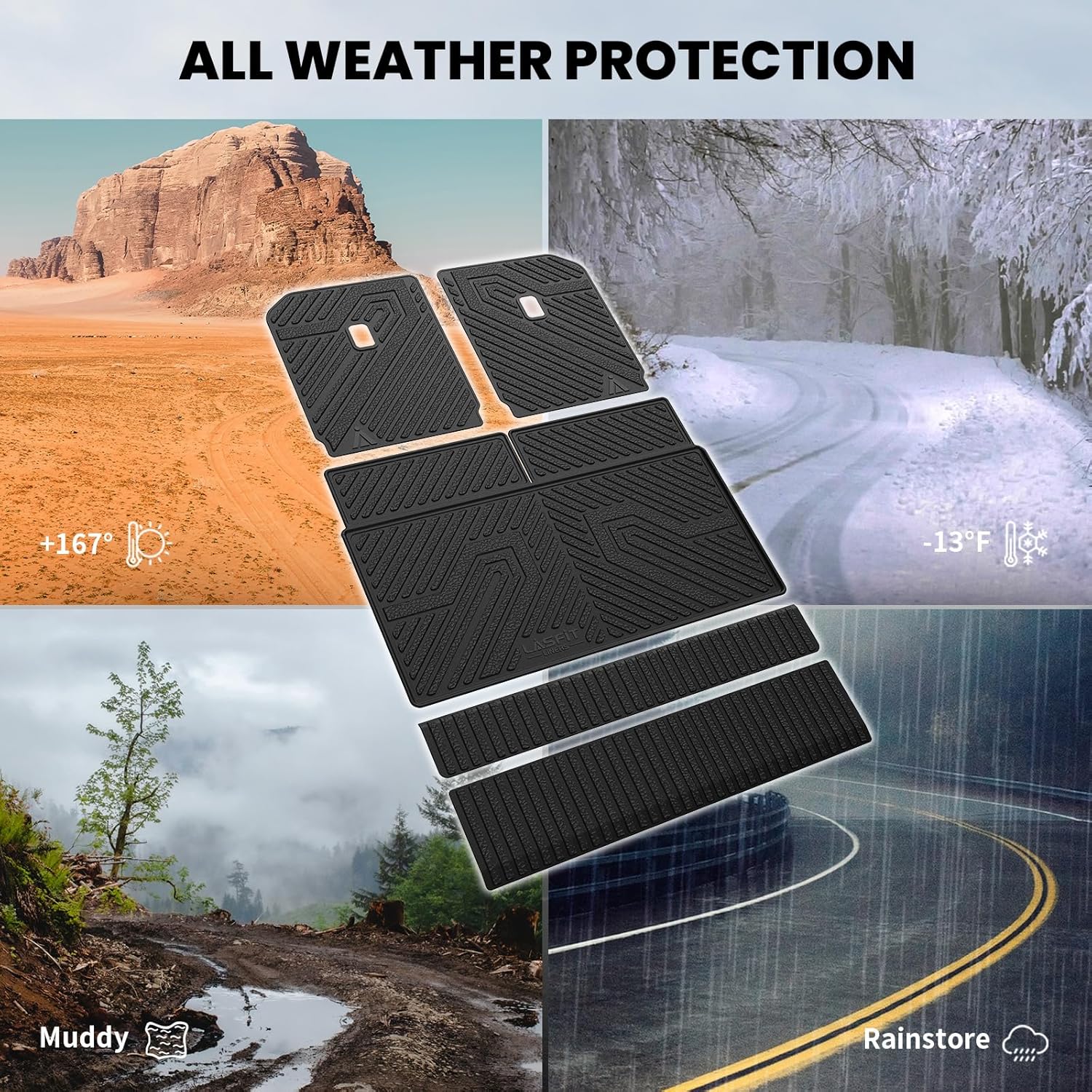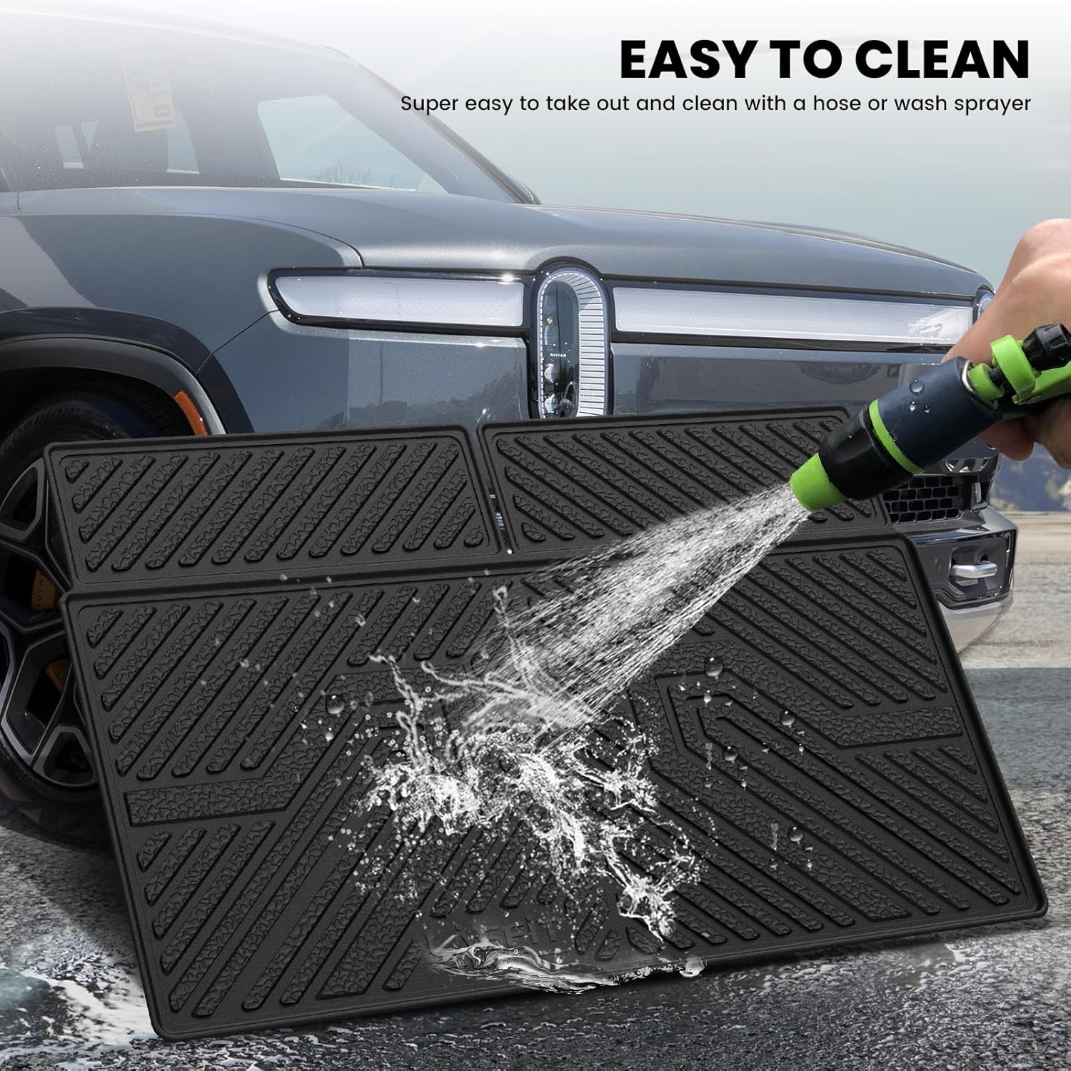 ALL WEATHER PROTECTION - R1S Cargo mats Shield your floor from dirt mud salt rain snow and even hot summer temperatures. Cleaning up daily wear and tear off our car mats is a breeze.