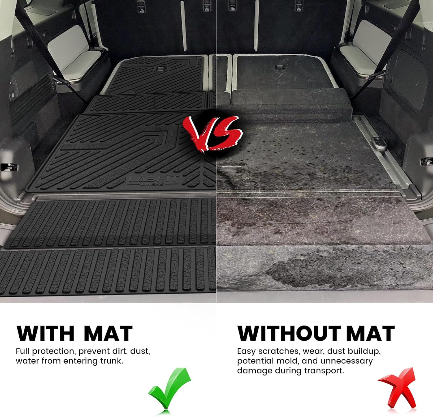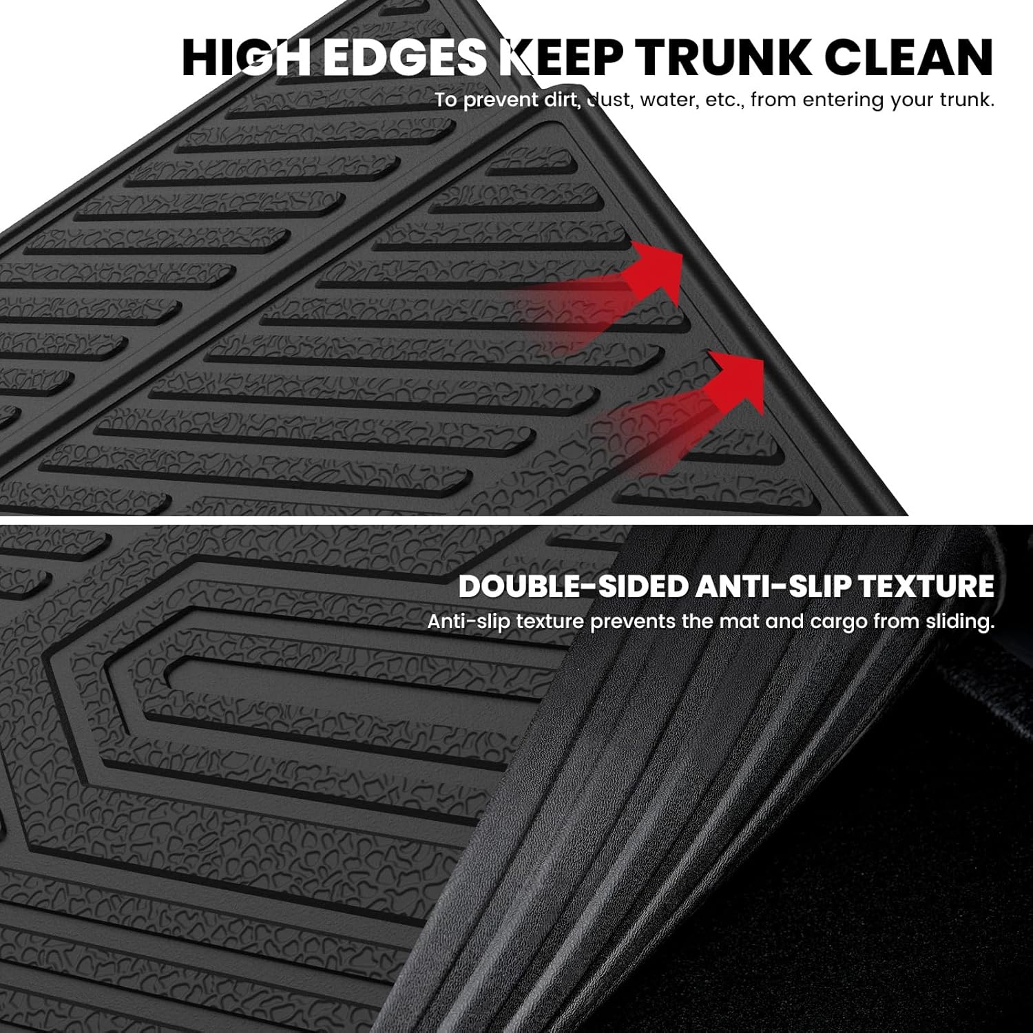 FIRM YET FLEXIBLE - These durable R1S trunk mat Raised edges all the way around and have been upgraded to the use of innovative material allowing our floor liners to last long and way more durable that they won't curl or end up buckling.