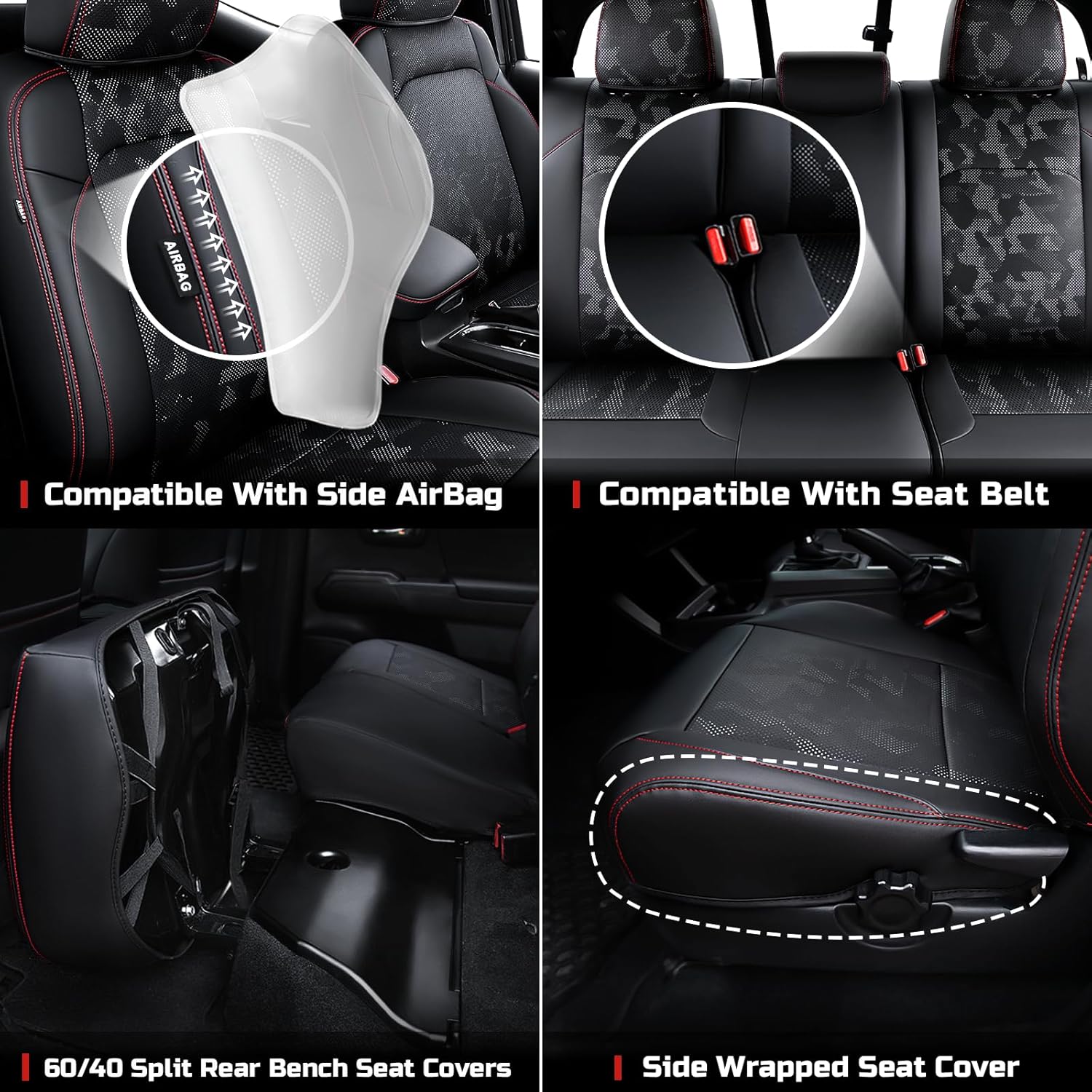 KEEP SAFETY : Our full set seat covers are designed to be compatible with side airbags and seat belt ensuring that your Tacomas safety features are not compromised. Overall these seat covers are a must-have for any Tacoma owner who wants to keep their vehicles interior looking new and protected while also ensuring the safety of the passengers.