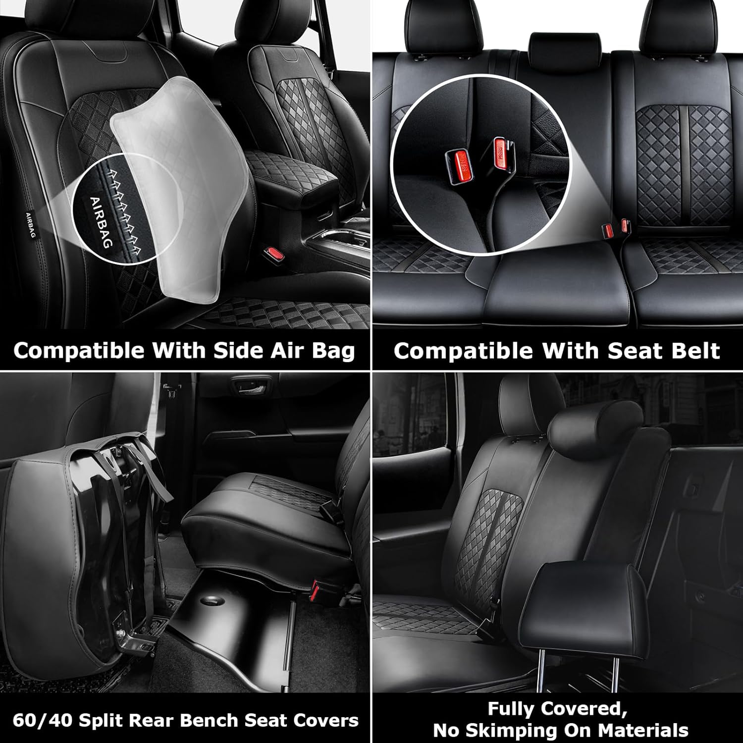 KEEP SAFETY : Our full set seat covers are designed to be compatible with side airbags and seat belt ensuring that your Tacomas safety features are not compromised. Overall these seat covers are a must-have for any Tacoma owner who wants to keep their vehicles interior looking new and protected while also ensuring the safety of the passengers.