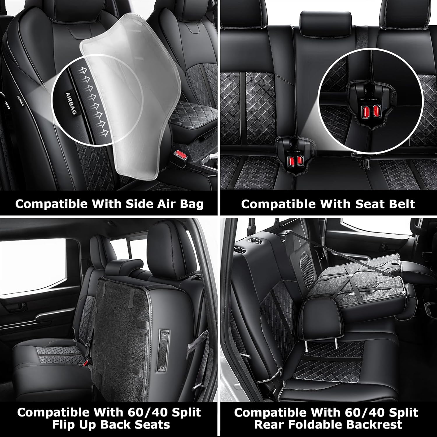 KEEP SAFETY : full set seat covers are designed to be compatible with side airbags and seat belt ensuring that your Tacomas safety features are not compromised. Overall these seat covers are a must-have for any Tacoma owner who wants to keep their vehicles interior looking new and protected while also ensuring the safety of the passengers.
