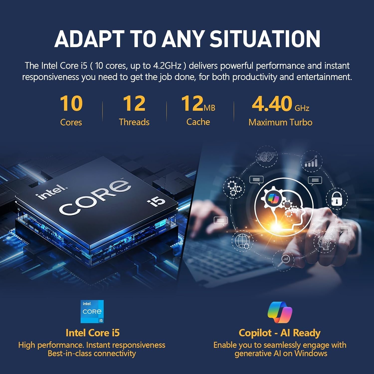 [10 Core Intel i5-1235U Processor] Intel Core i5-1235U (Up to 4.40 GHz Max. Boost Clock 12MB Intel Smart Cache 10 Cores 12 Threads). Imagine design and create without boundaries. The powerful 12th gen Intel Core i5 processor features machine intelligence that anticipates your needs. Discover true responsiveness with 10 cores and 12 threads for ultimate performance.