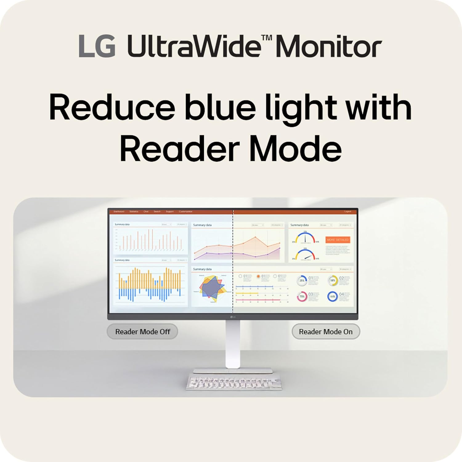 Reader Mode Brings Comfort to Reading - Reader Mode adjusts your display to warmer tones and optimized brightness thats ideal for reading documents or browsing for extended periods.