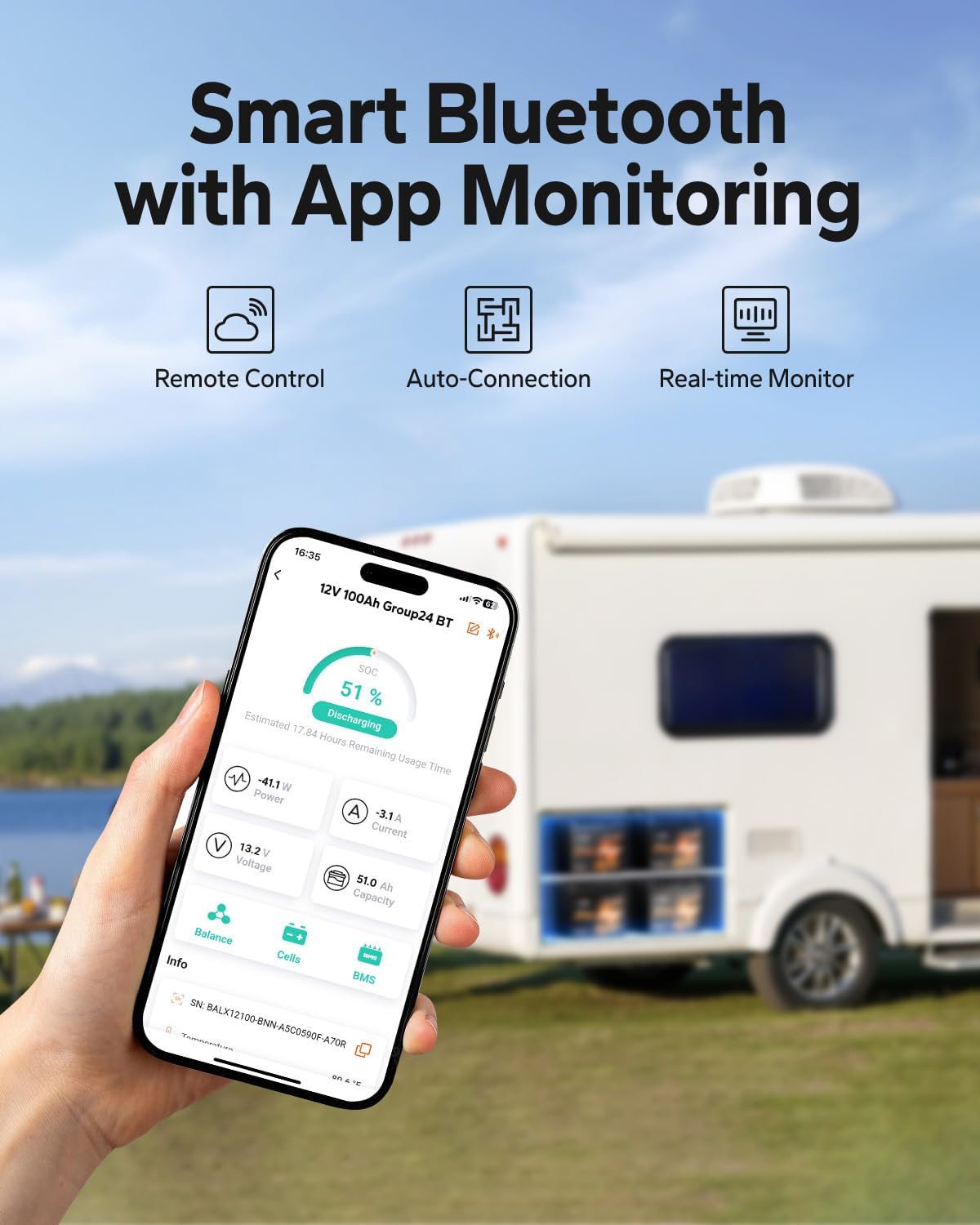 All-Weather Cold Protection: Smart cutoff stops charging below 0F and discharging below -4F. Keeps your battery safe and reliable in freezing conditions.
