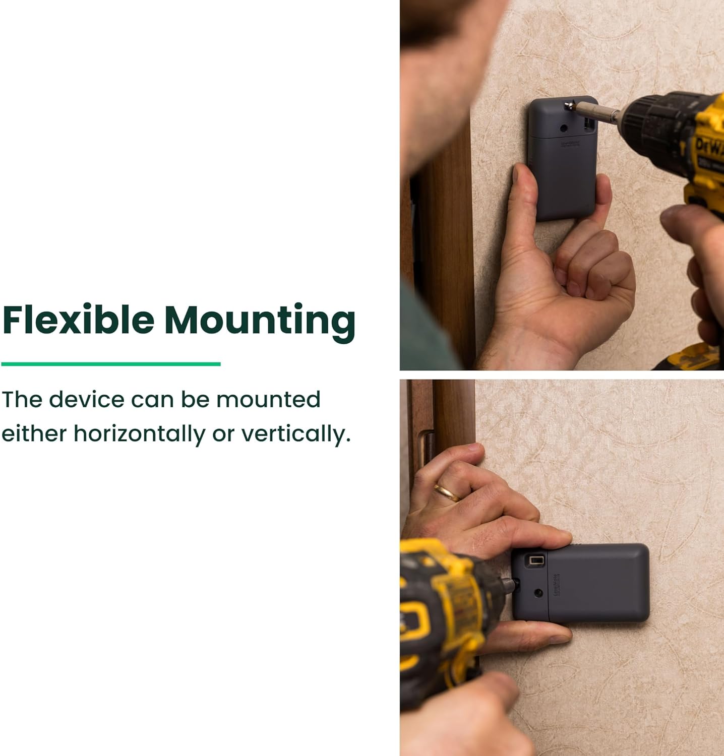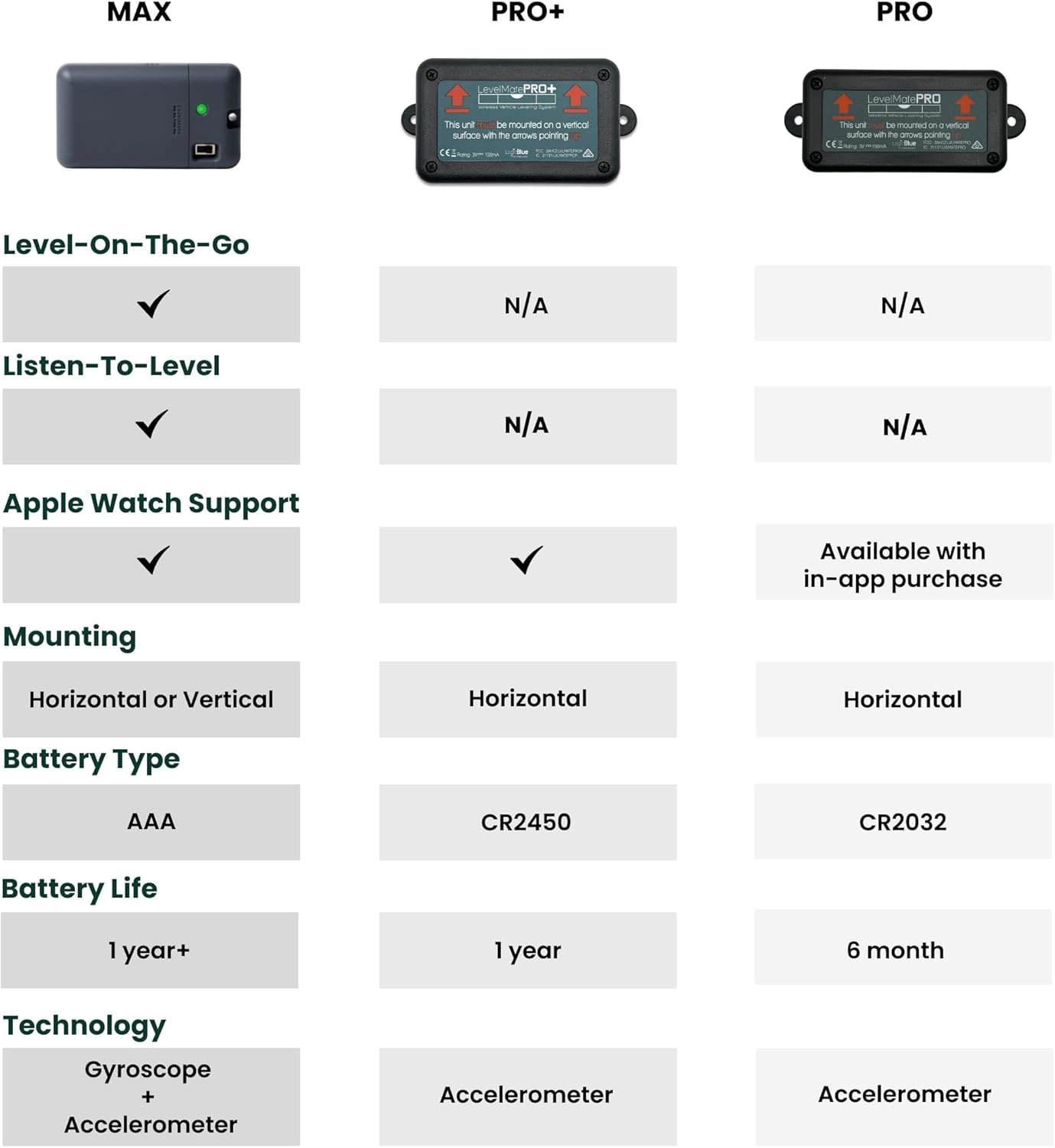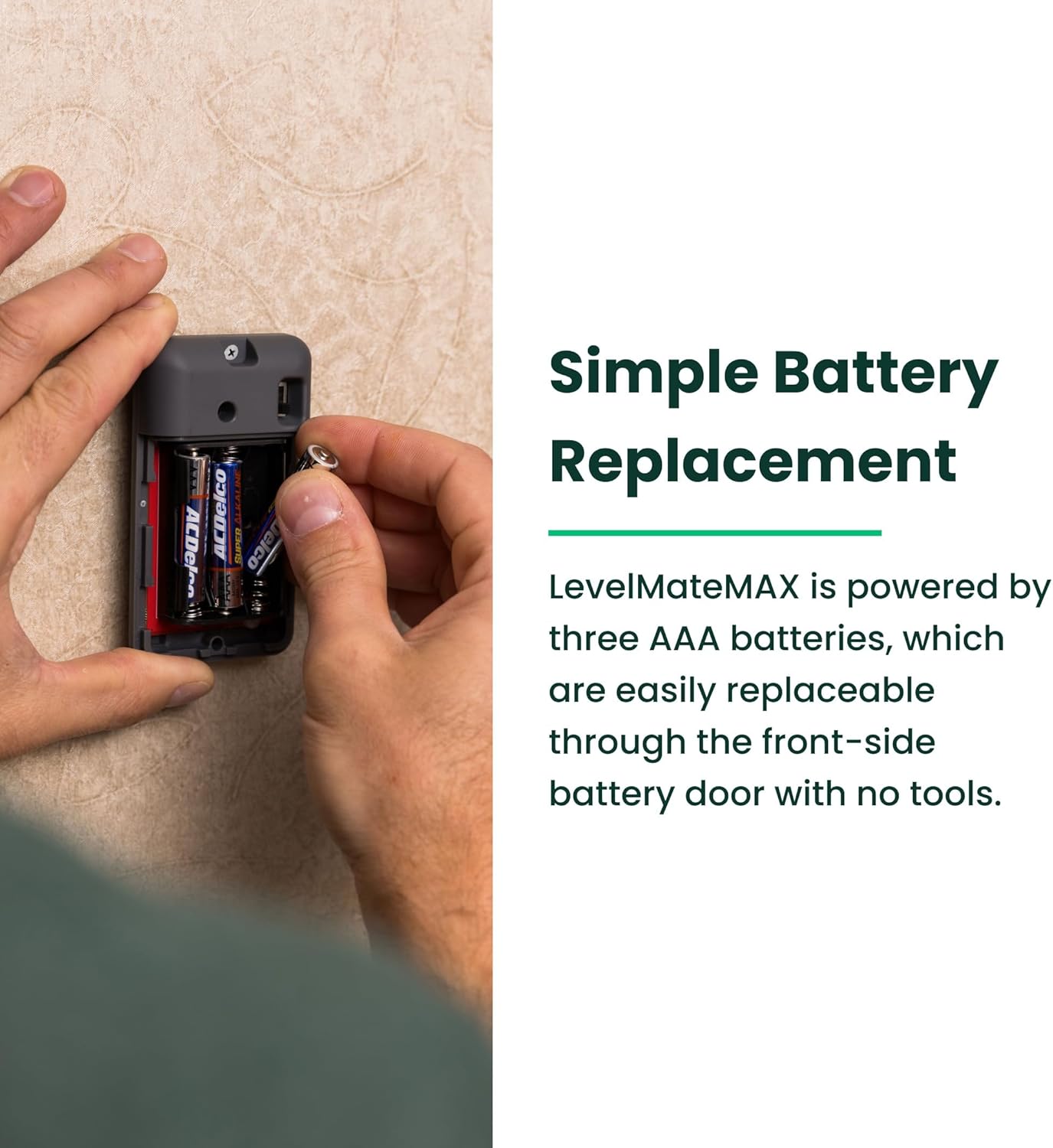 Simple Setup: All you need is to mount the device with the included screws; LevelMateMAX app compatible with both iOS and Android will guide you through each step to connect the device to your phone/tablet; user-replaceable AAA batteries are included
