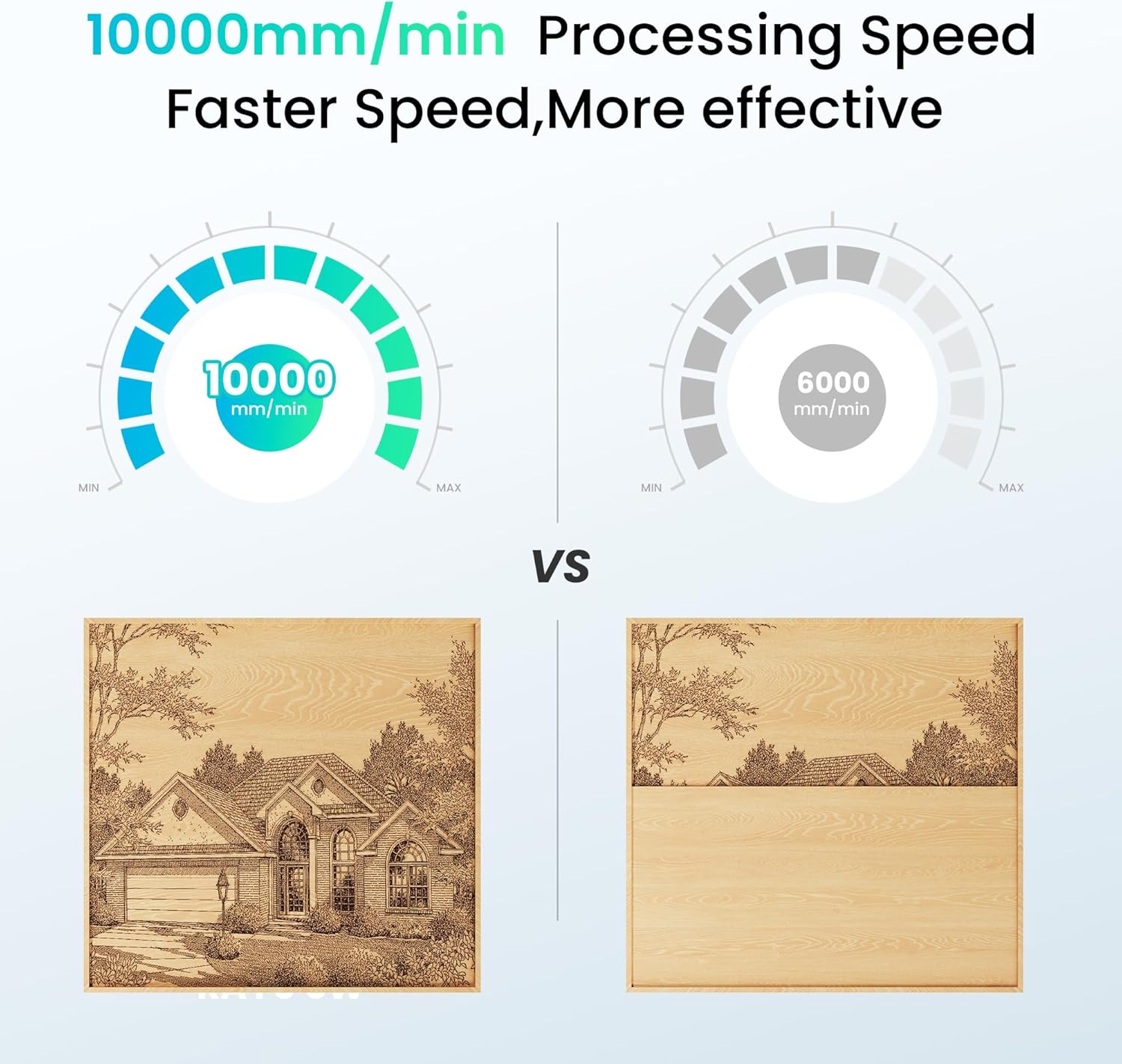 High-Precision Laser EngravingThe Ray5 laser engraver 5000MW utilizes advanced laser technology featuring a laser point size of 0.08*0.08mm and an engraving accuracy of 0.01mm. This ensures precise engraving down to 0.01mm enabling intricate designs and detailed patterns.