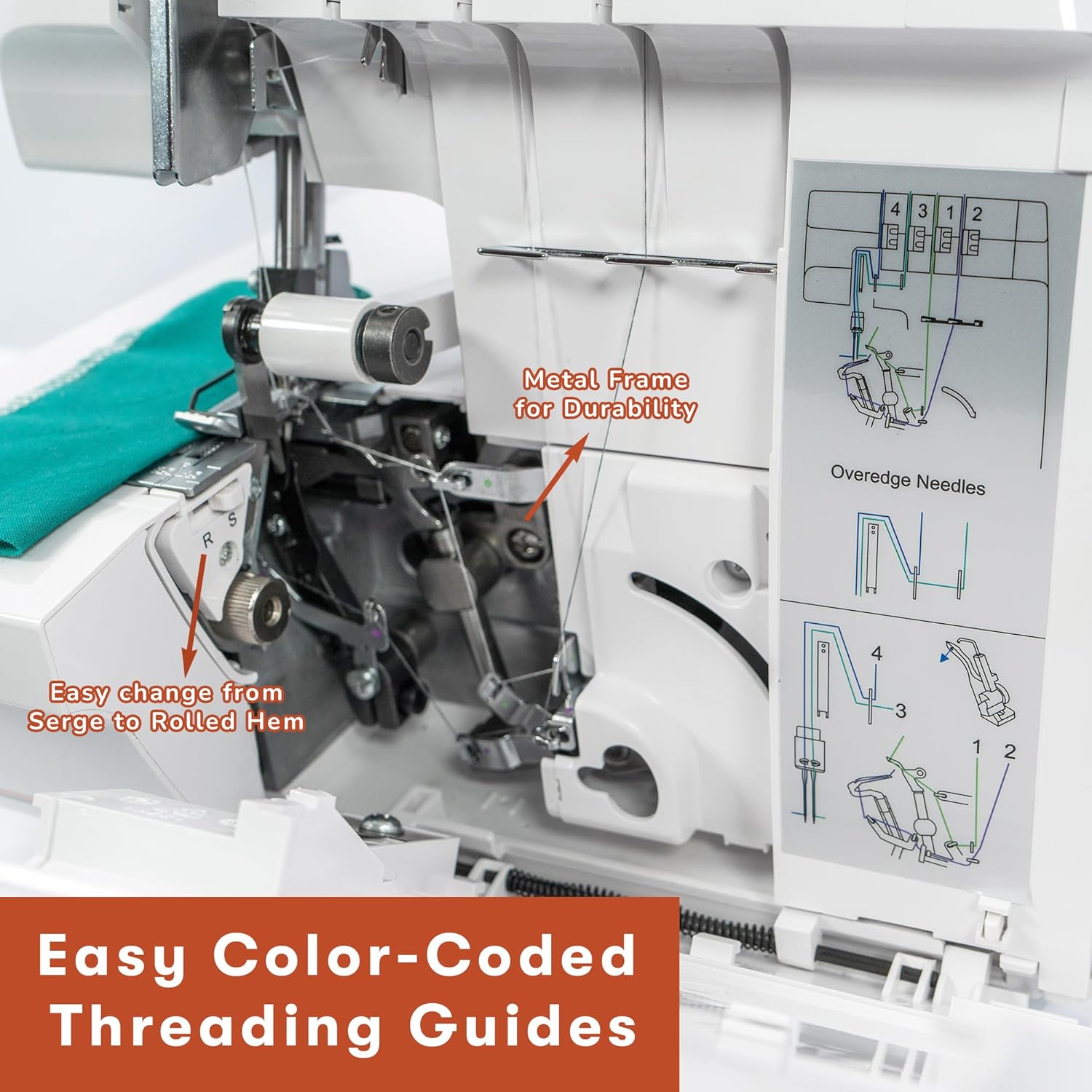 EASY TO THREAD WITH COLOR-CODED THREADING GUIDE: A serger sewing machine that is designed with an easy-to-use color-coded threading guide making threading quick and simple for all levels of experience. Whether you're a beginner or advanced sewist the clear threading system reduces setup time allowing you to focus on your projects