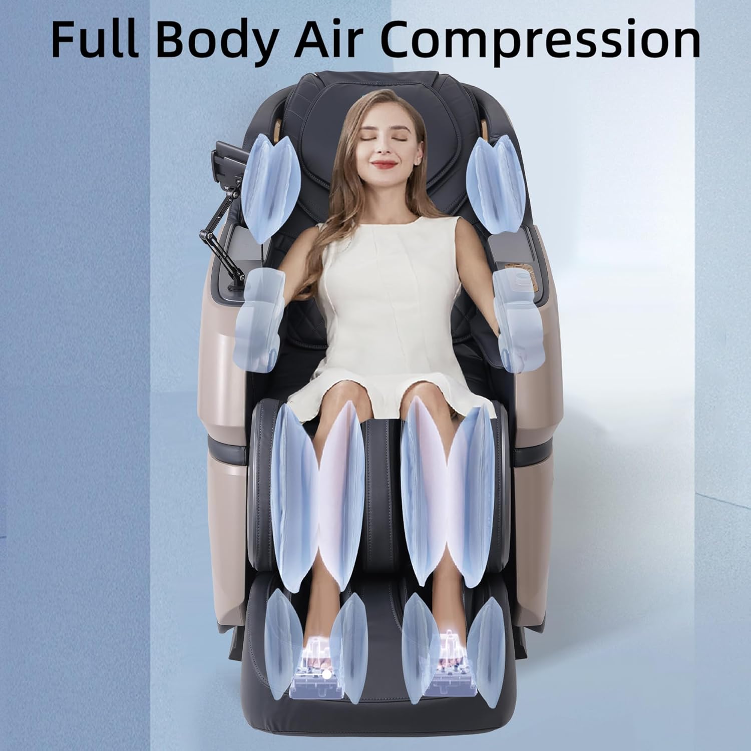 4D Massage Chair:Advanced Air Soothing Airbags and 4D Massage Technology replicate a human massage experience with 27 modes 5 techniques and 32 airbag points covering the entire body. Three levels of airbag pressure compress the shoulders arms feet and buttocks relieving body pain. Lower back Graphene heating therapy provides warmth for occasional and chronic strains.