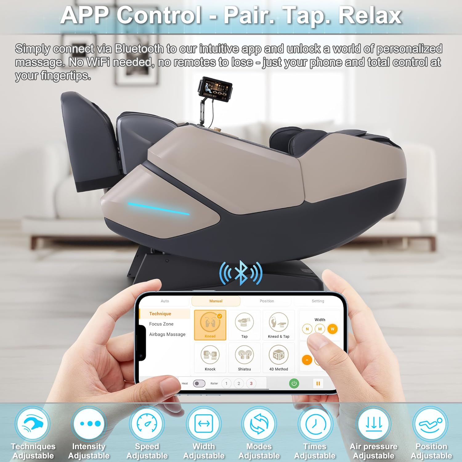 Intelligent Voice Control & Bluetooth Speaker: Intelligent Voice Control and TFT Touch Screen allow hands-free operationsimply tell the massage chair your demands and the AI will immediately start the corresponding program. Additionally the massage chair is equipped with a Bluetooth speaker allowing you to enjoy music while relaxing and relieving fatigue.