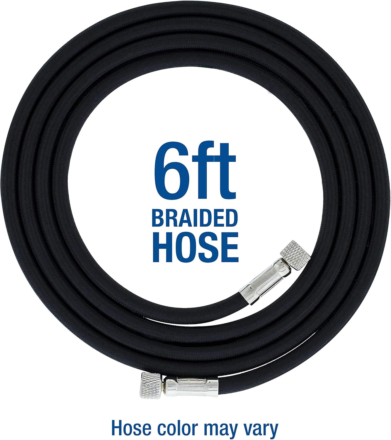 Accessories & Guide: Air compressor for airbrush hobbyists includes a 6 foot braided air hose a dual airbrush holder a Quick Start Guide and an Airbrush Resource Center Access Card.