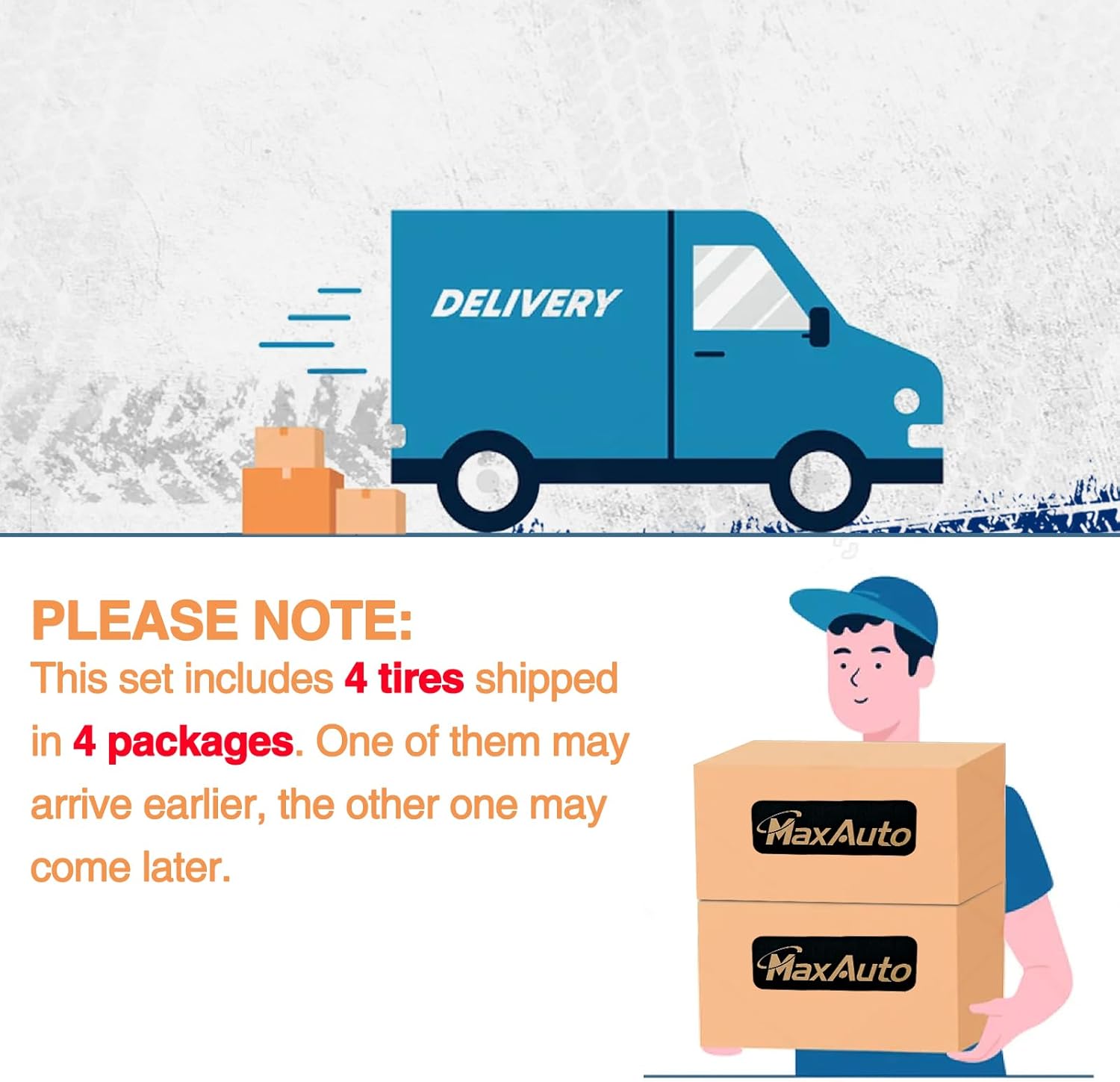 Tires are deliver 1 per box. Pack of 4 tires will arrive in separate packages with different tracking numbers and may not be delivered at the same time. Please wait for all shipments. For tracking help or missing packages contact