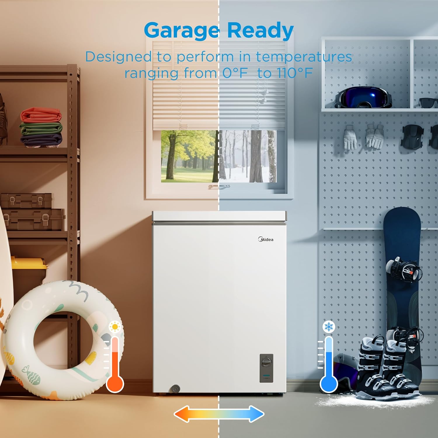 Garage Ready Designed and tested to operate efficiently in non-climate-controlled environments. (38F to 110F in fridge mode 0F to 110F in freezer mode)