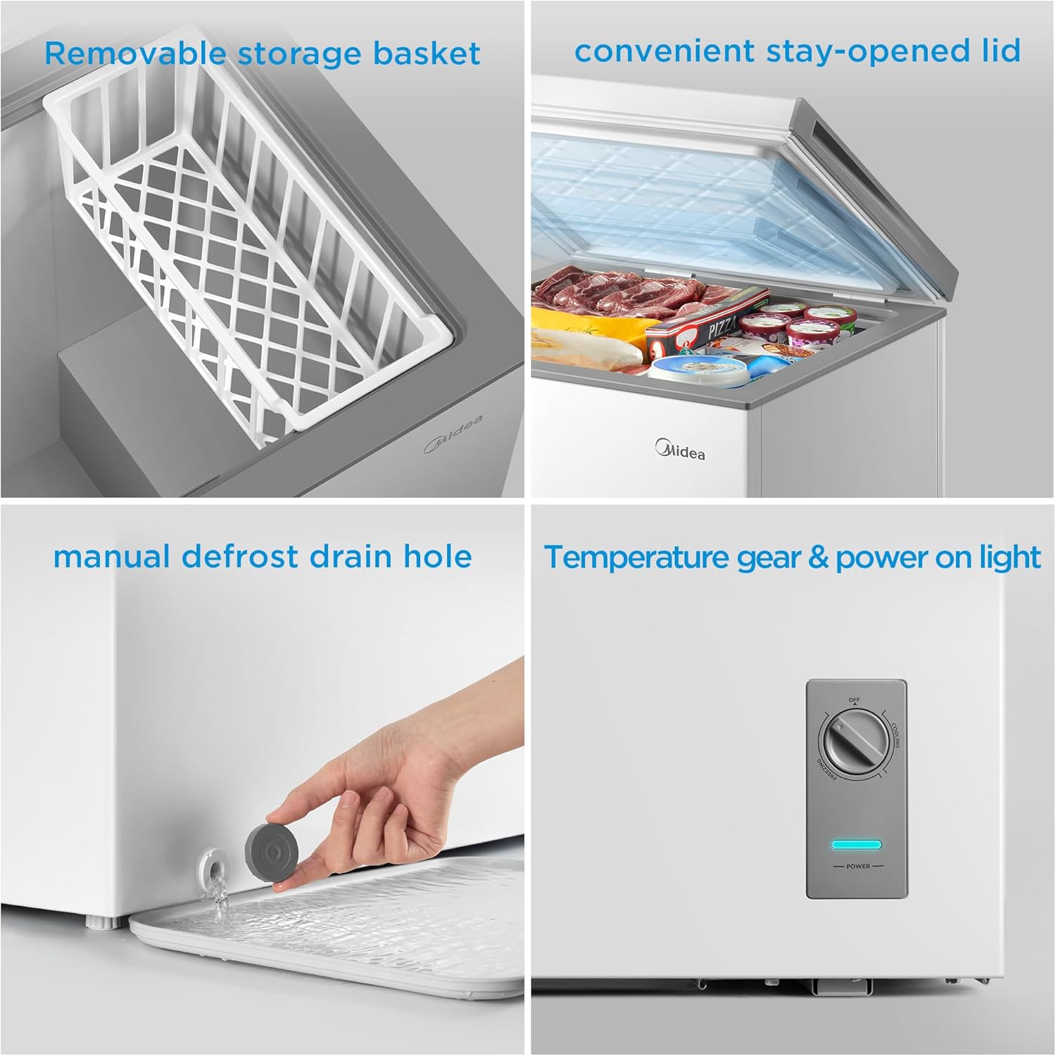 Power Outage Protection Keeps items frozen for up to 48 hours after losing power.