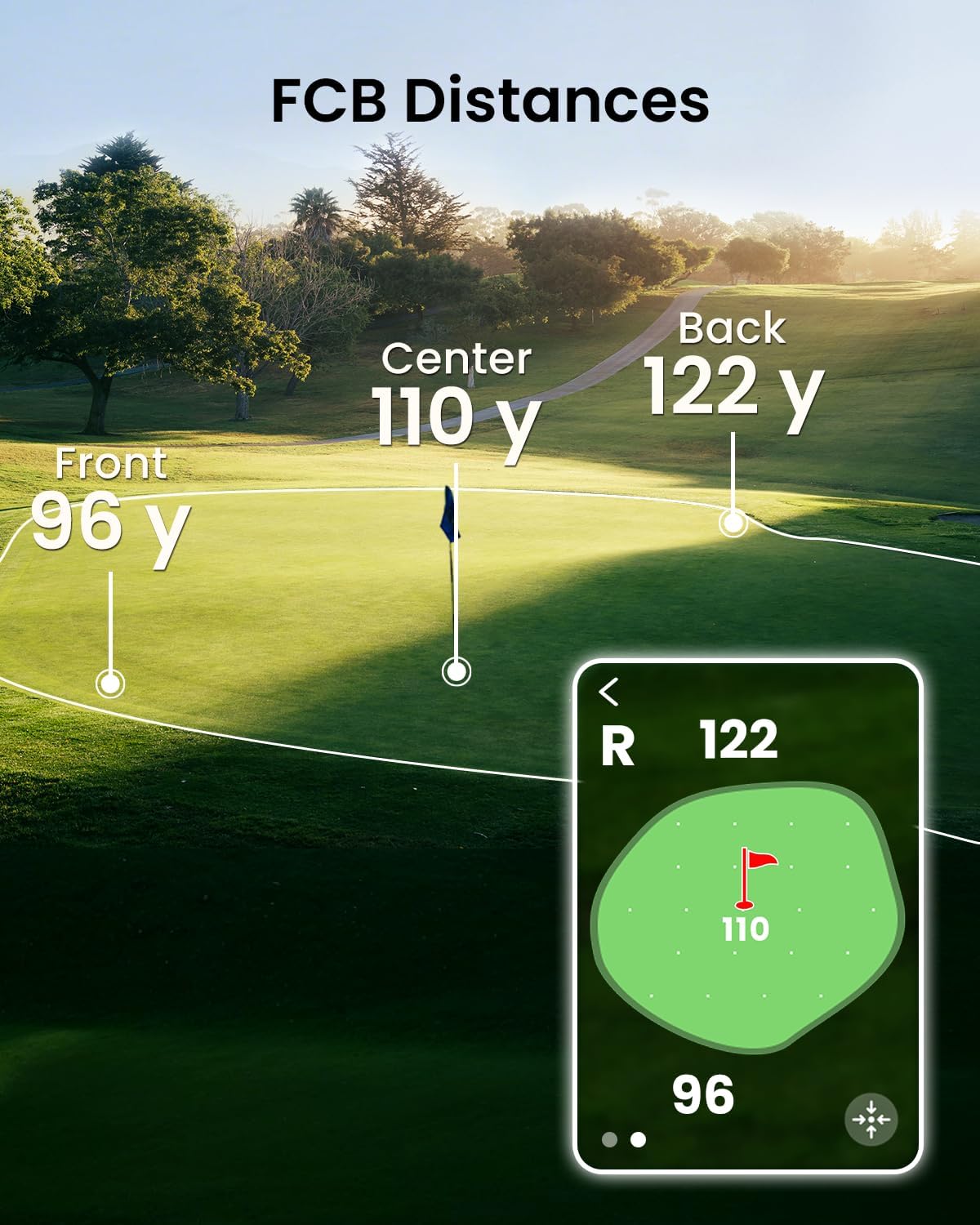 Advanced Rangefinder Feature - Going beyond basic FCB distance this golf speaker also supports Hole View Green View Layup Hazard Info and Shot Tracking. Key data and advanced features are displayed vividly on the GPS handheld screen with no additional requirements.