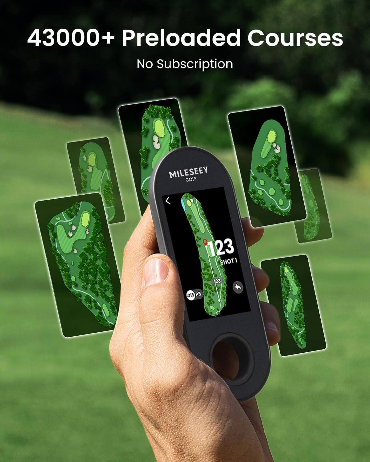43 000+ No-Subscription Courses - Experience preloaded and intuitive courses view with premium 3'' Color Touchscreen of this GPS speaker. Instantly visualize detailed layouts of hazards greens pin positions and fairways with no phone connection or downloads needed.