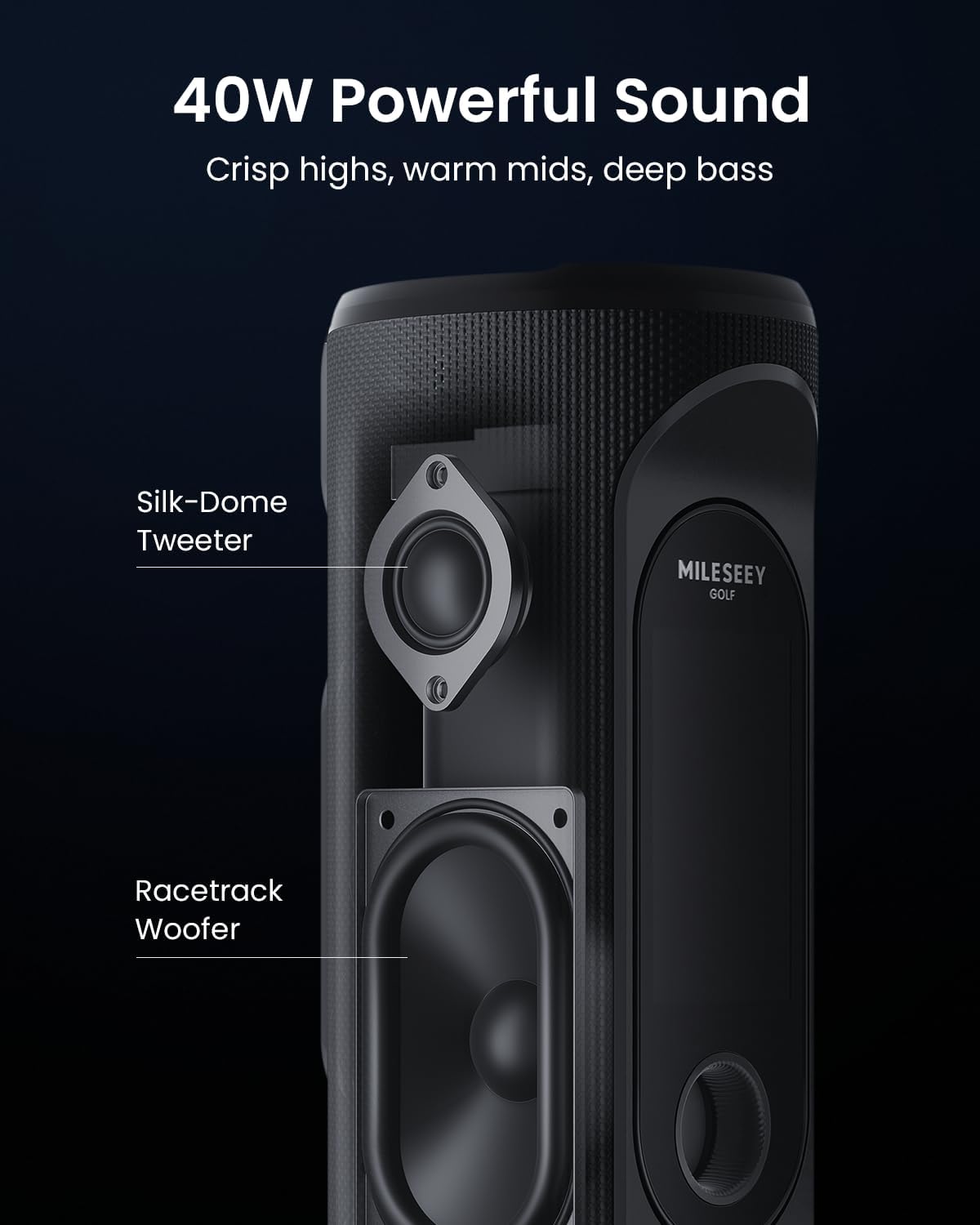 Epic Audio - With 40W of bold resonant audio it provides clear audible distance callouts. Engineered with a dual-band crossover system from crisp highs and warm mids to deep resonant bass every detail comes alivewhether on the fairway at home or partying with friends.